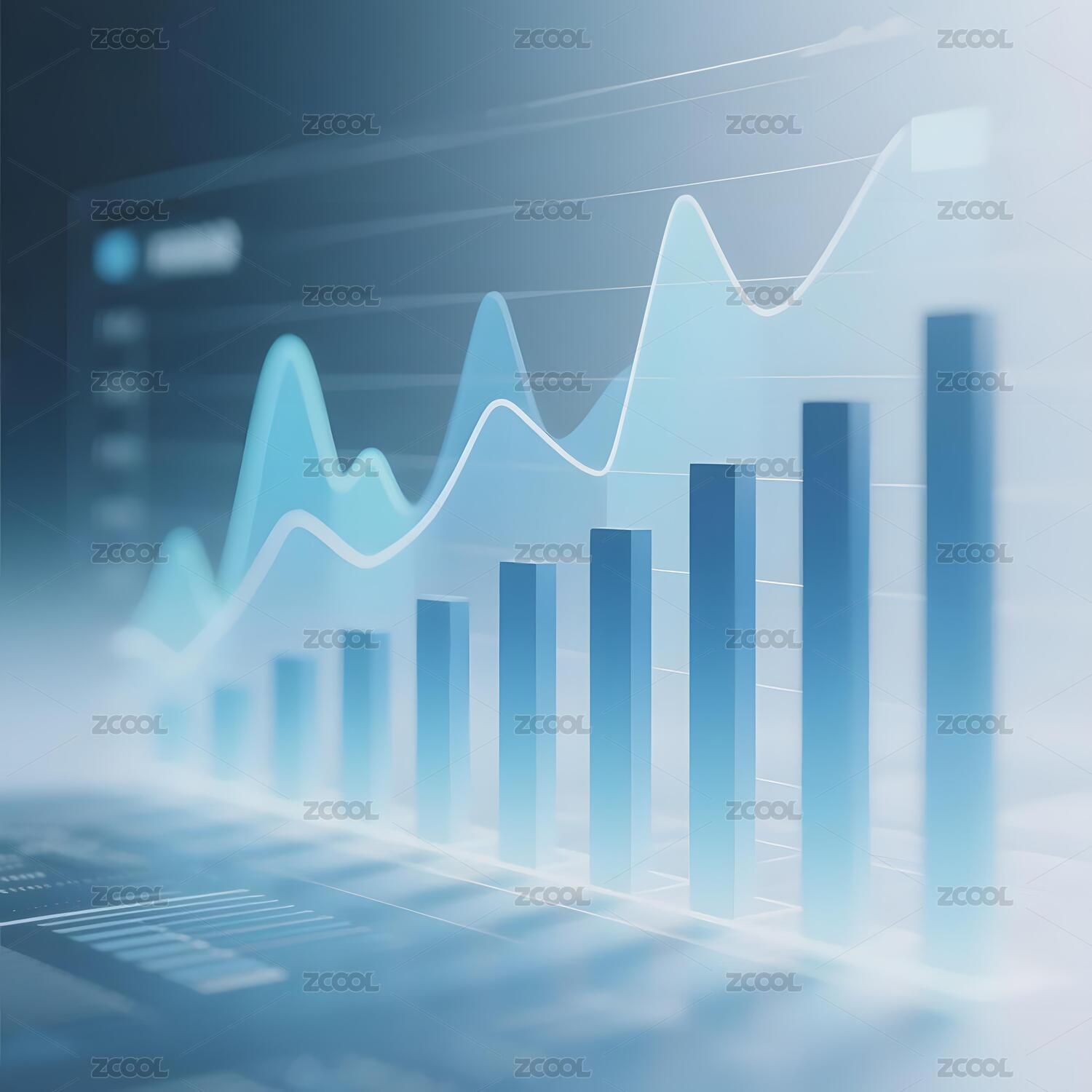 蓝色图表展示数据增长趋势