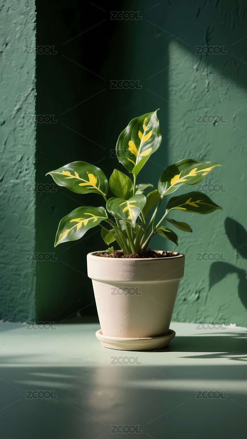 阳光下植物绿色叶子在白墙上留下美丽的影子