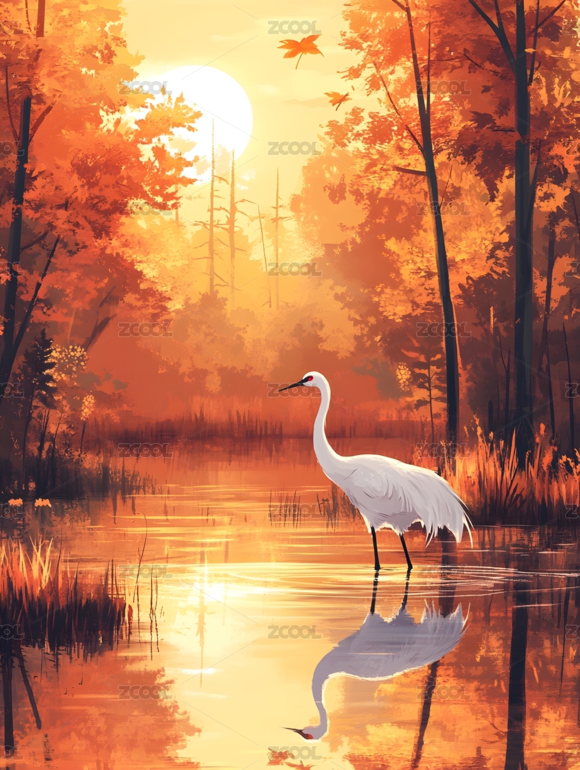秋季,秋天,风景,秋景,插画,处暑,白露,秋分,寒露,霜降