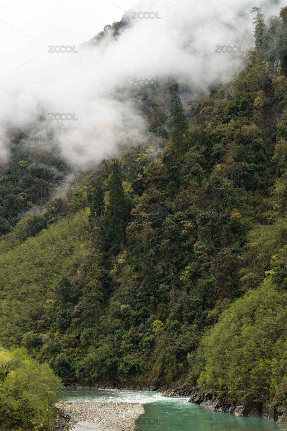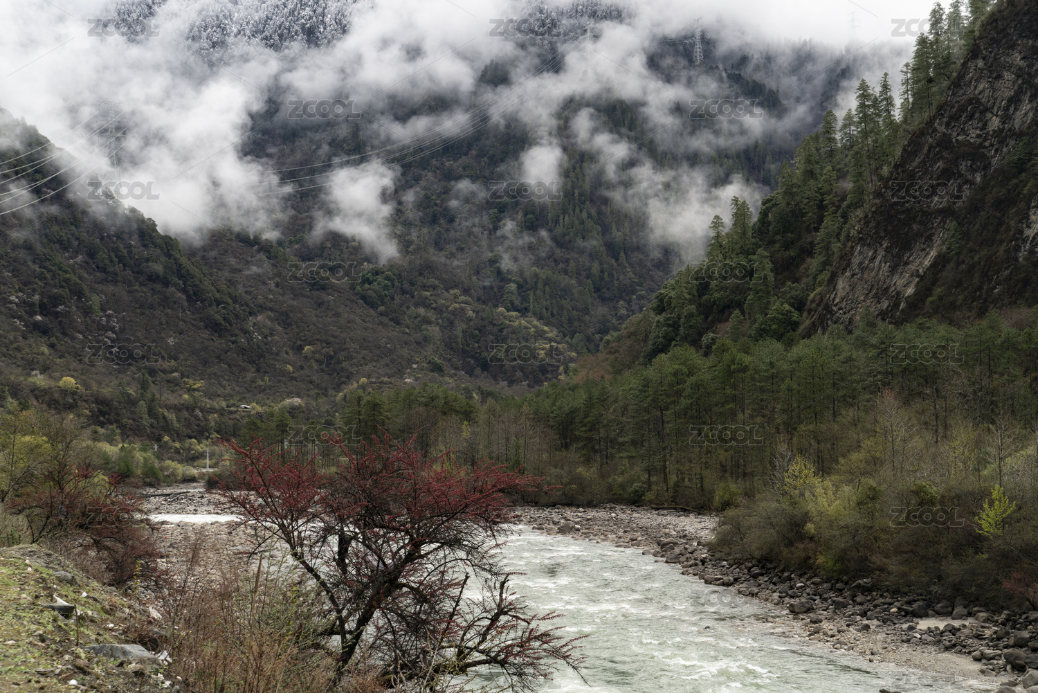 中国四川阿坝州茂县高山峭壁秋色彩林风景