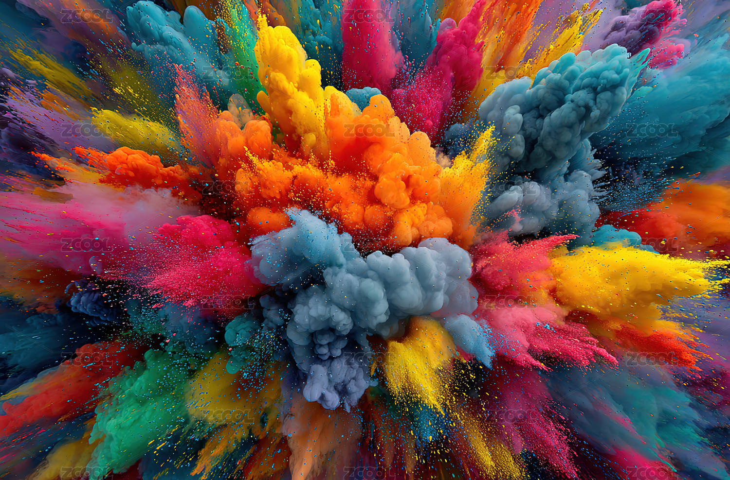 色彩缤纷多彩粉末爆炸瞬间,潮流艺术背景