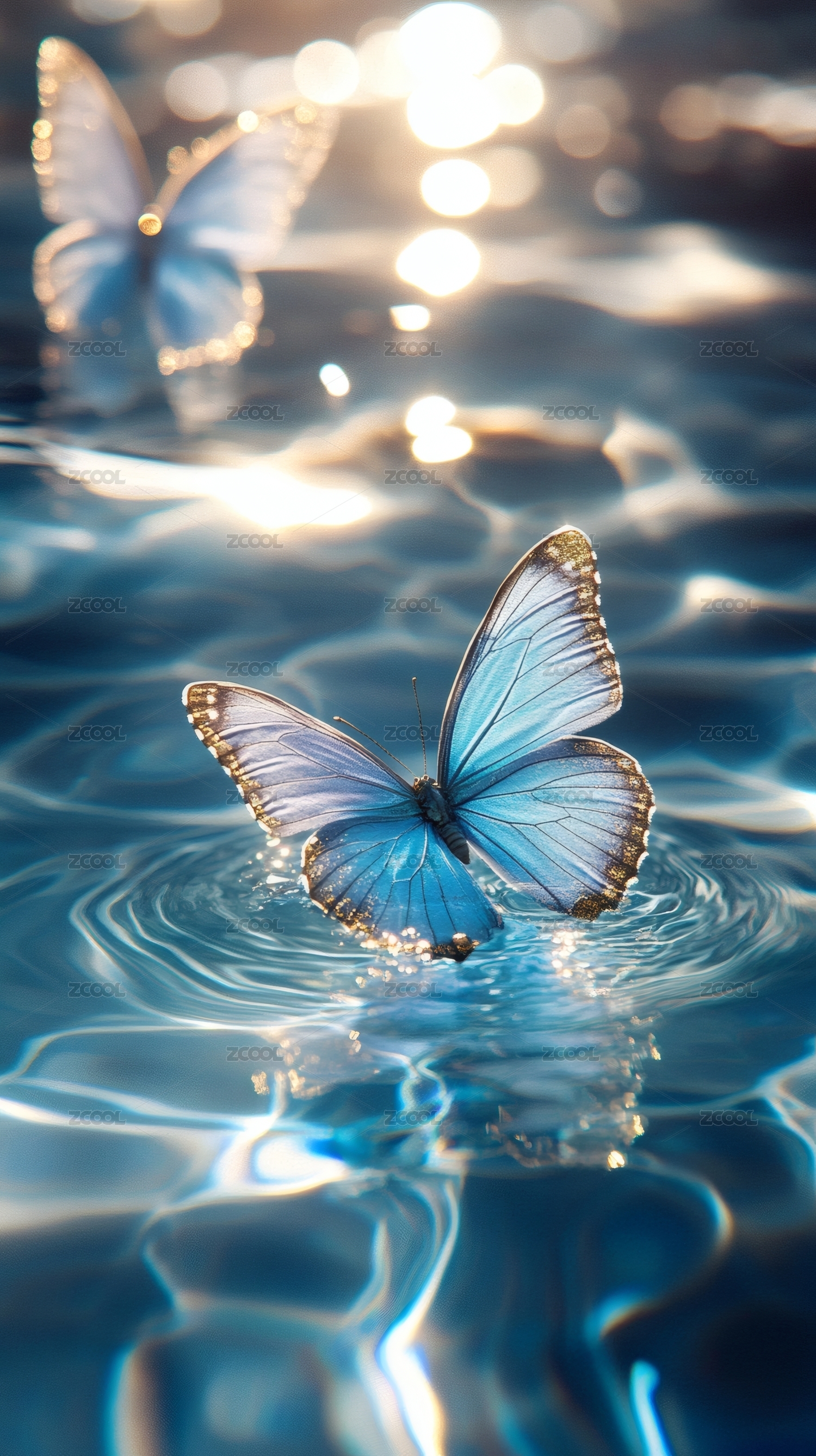 数码海中紫色蝴蝶抽象图形手机端海报背景