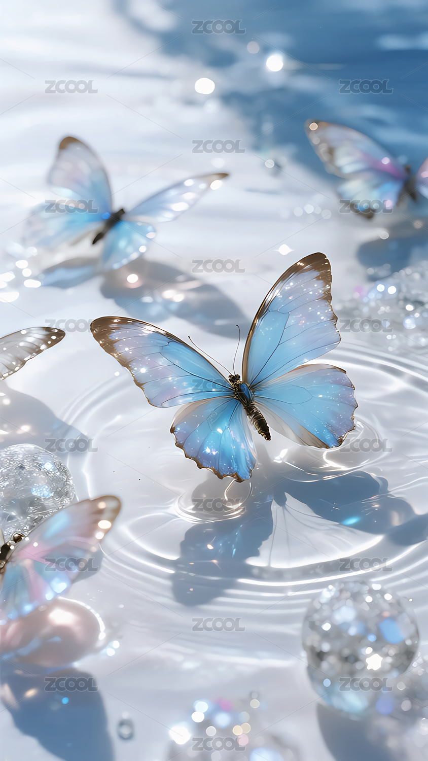 梦幻蓝色美妆护肤水晶蝴蝶主题背景
