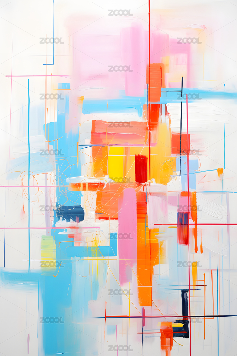 艺术感质感彩色几何抽象形状线条装饰画背景