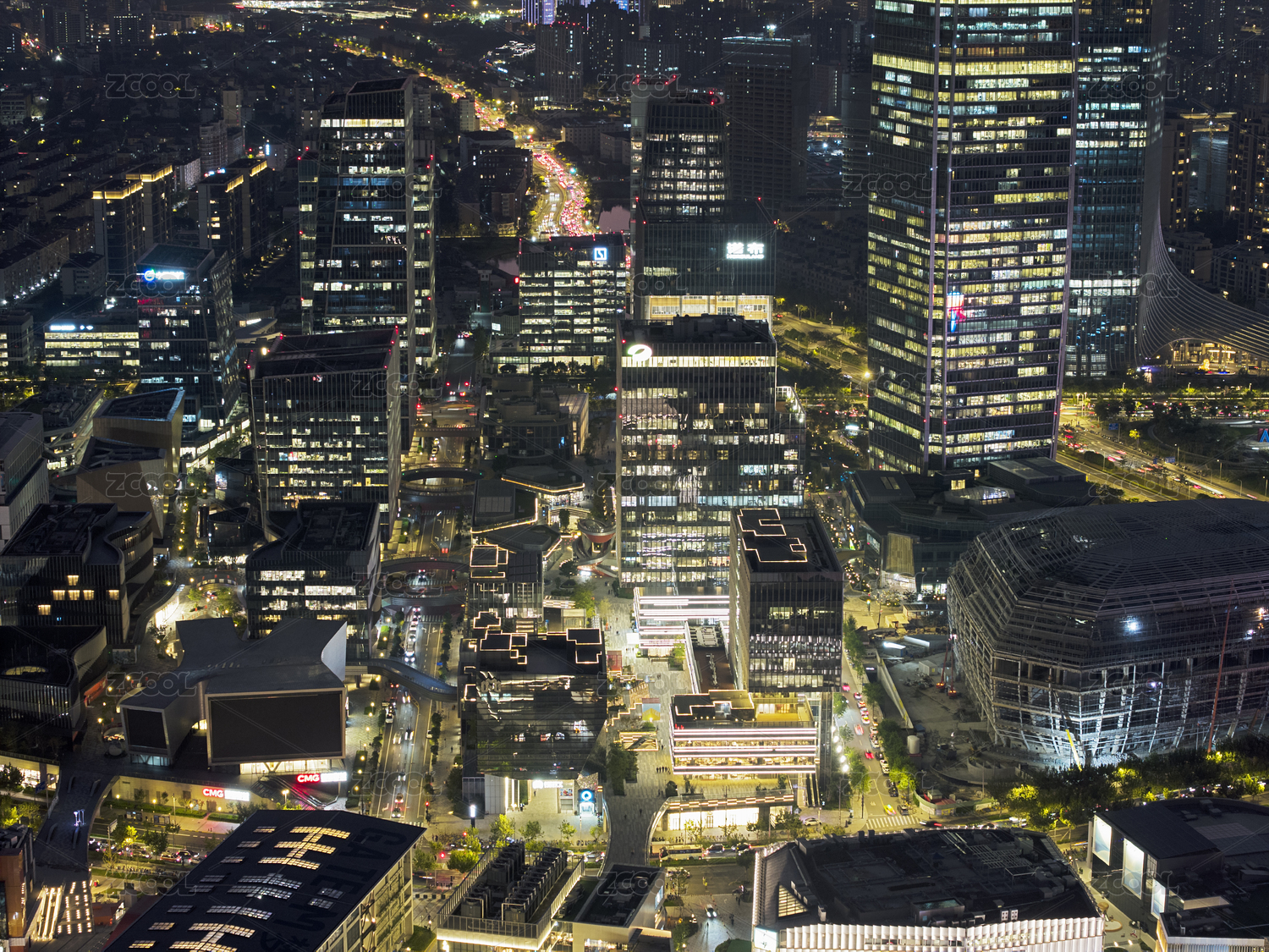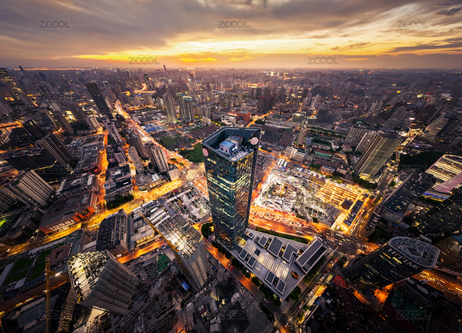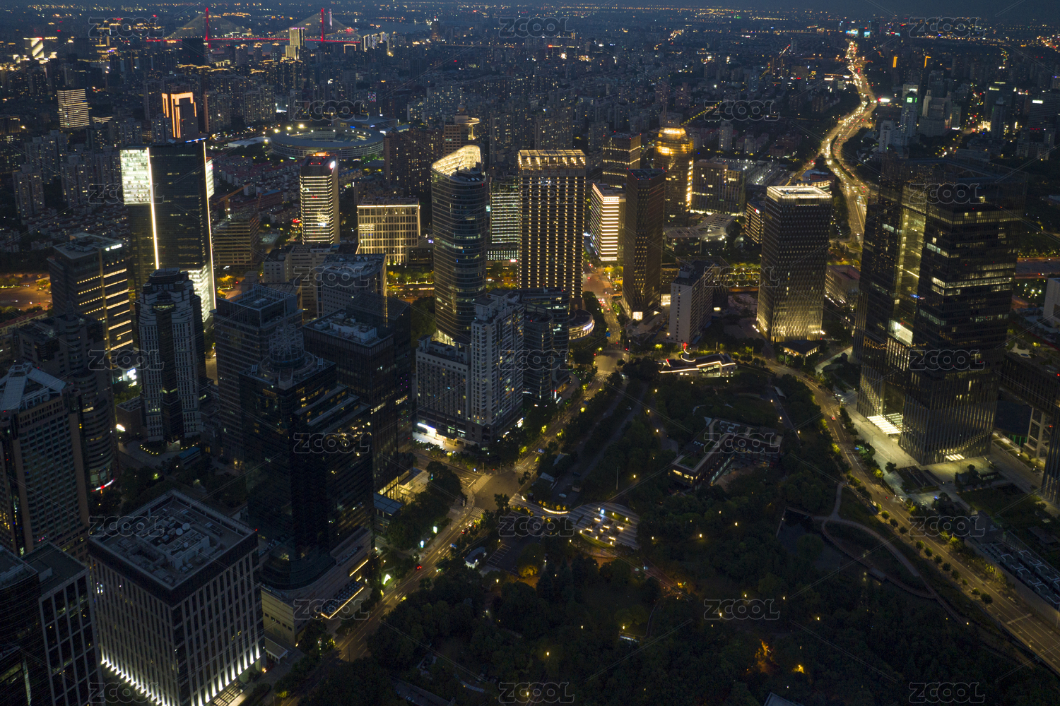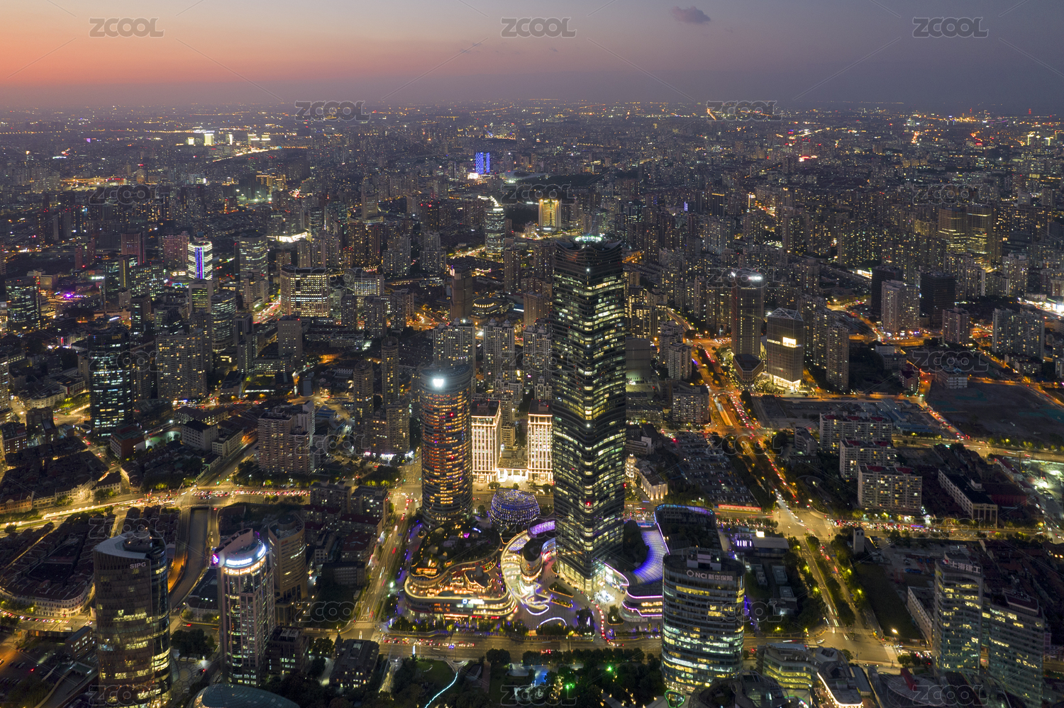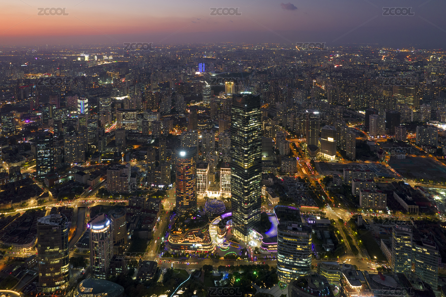 中国上海浦东陆家嘴中心航拍城市风光夜景