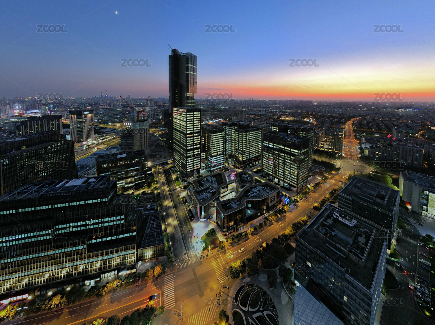 上海西岸滨江城开中心航拍城市建筑风光夜景