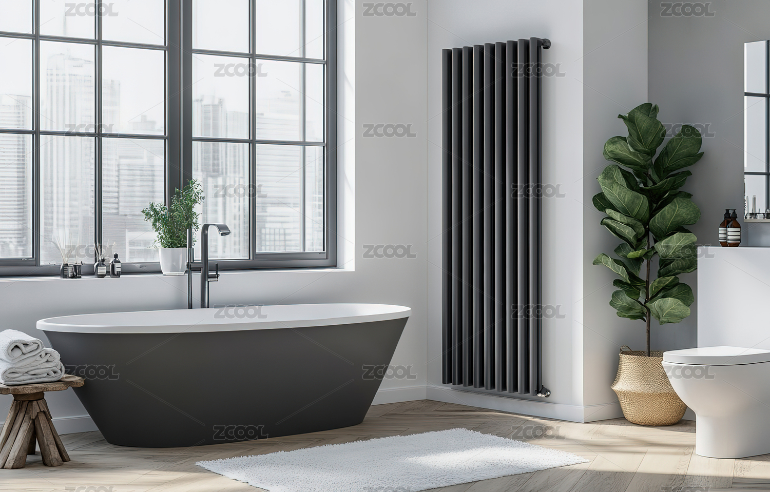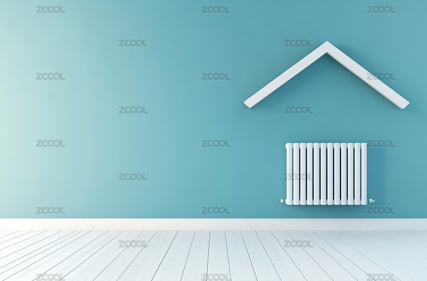 暖气上的房子和笑脸,冬季北方供暖主题图片