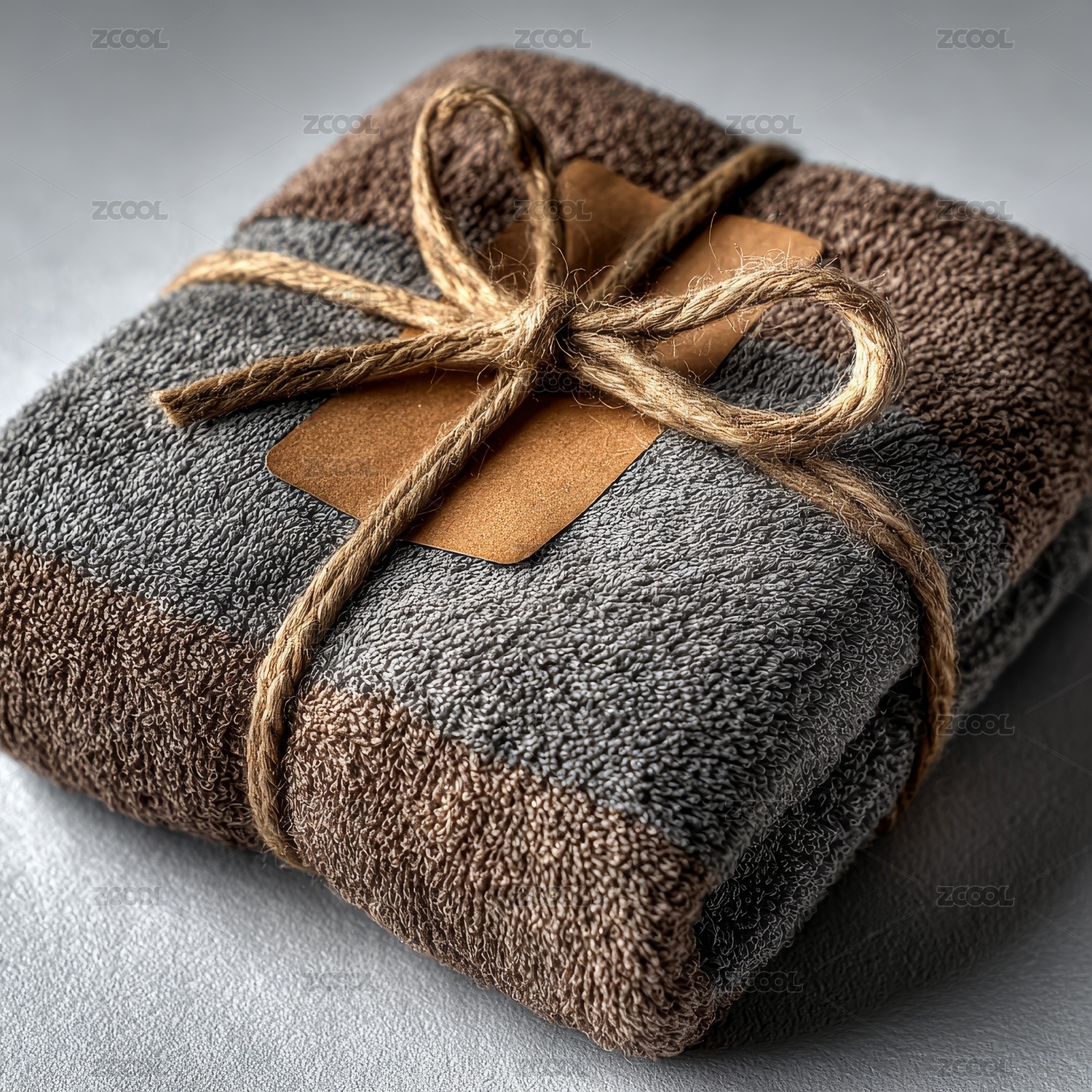 柔软灰色毛巾搭配棕色纸包装缠绕
