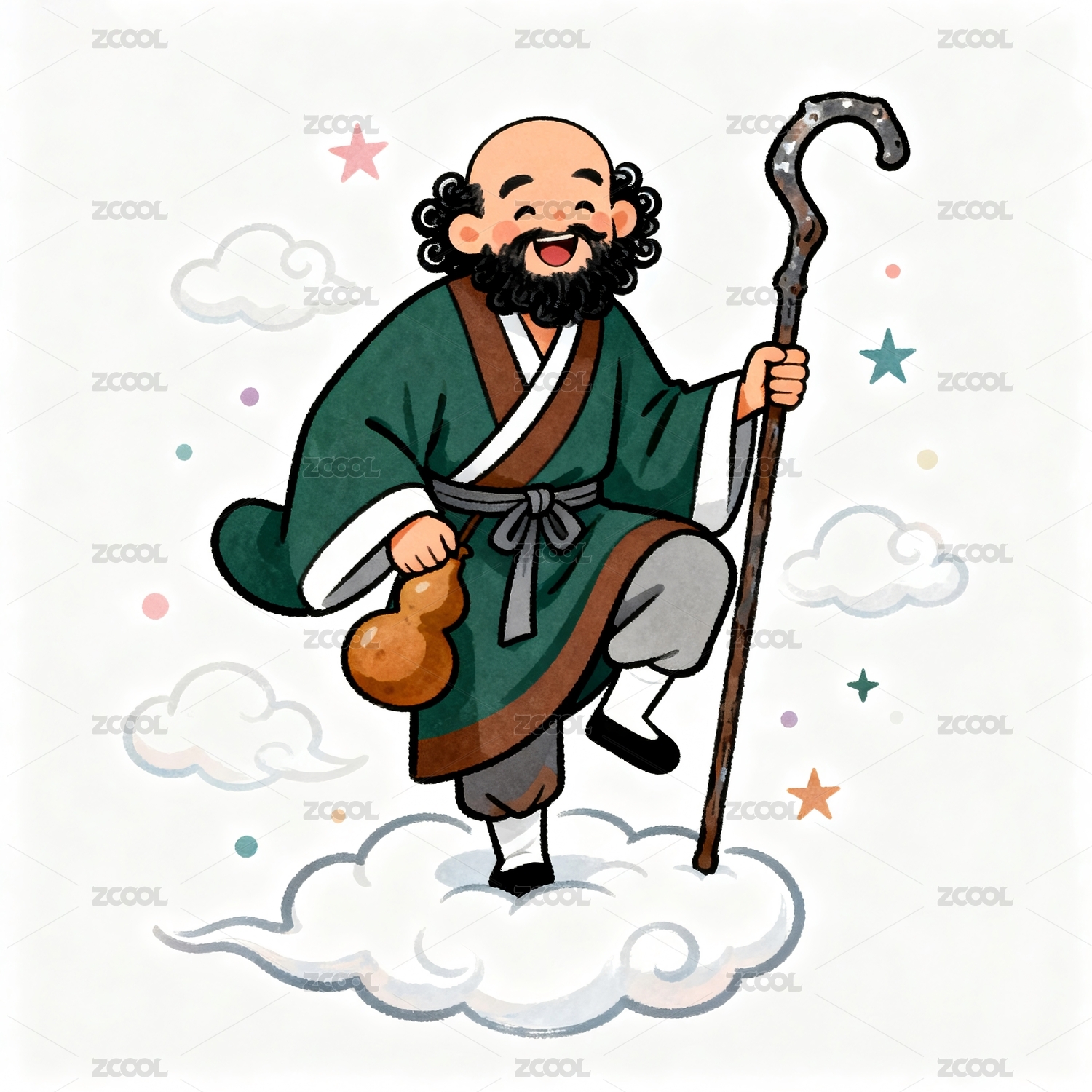 神仙,卡通,中国风,人物,祥云,葫芦,拐杖,神仙形象,八仙过海,铁拐李