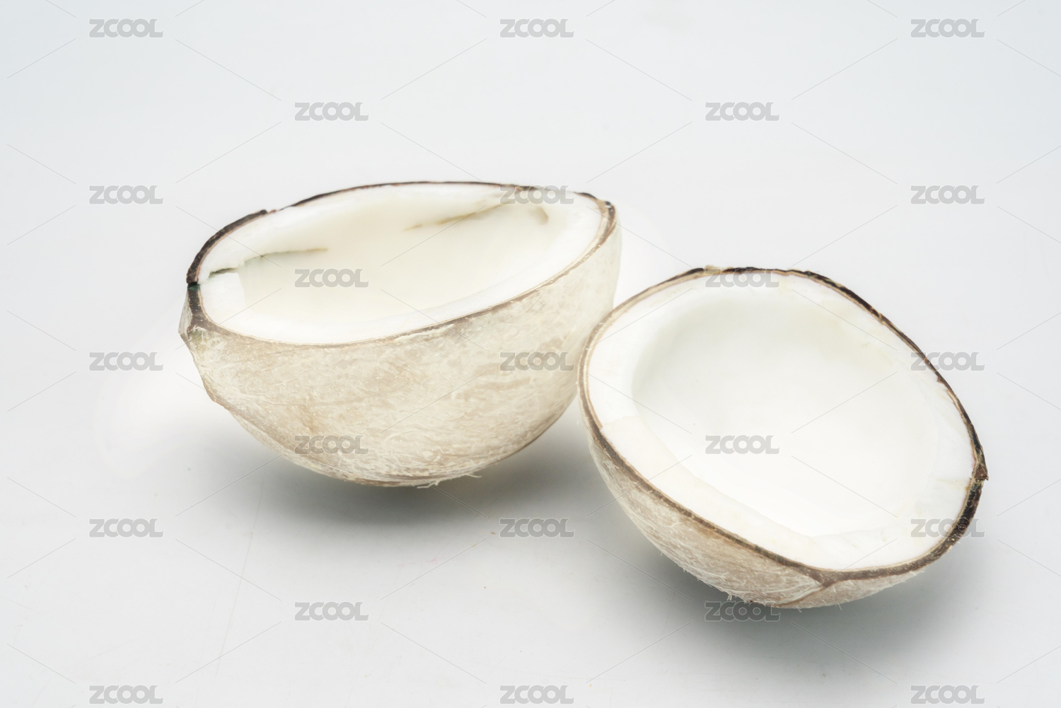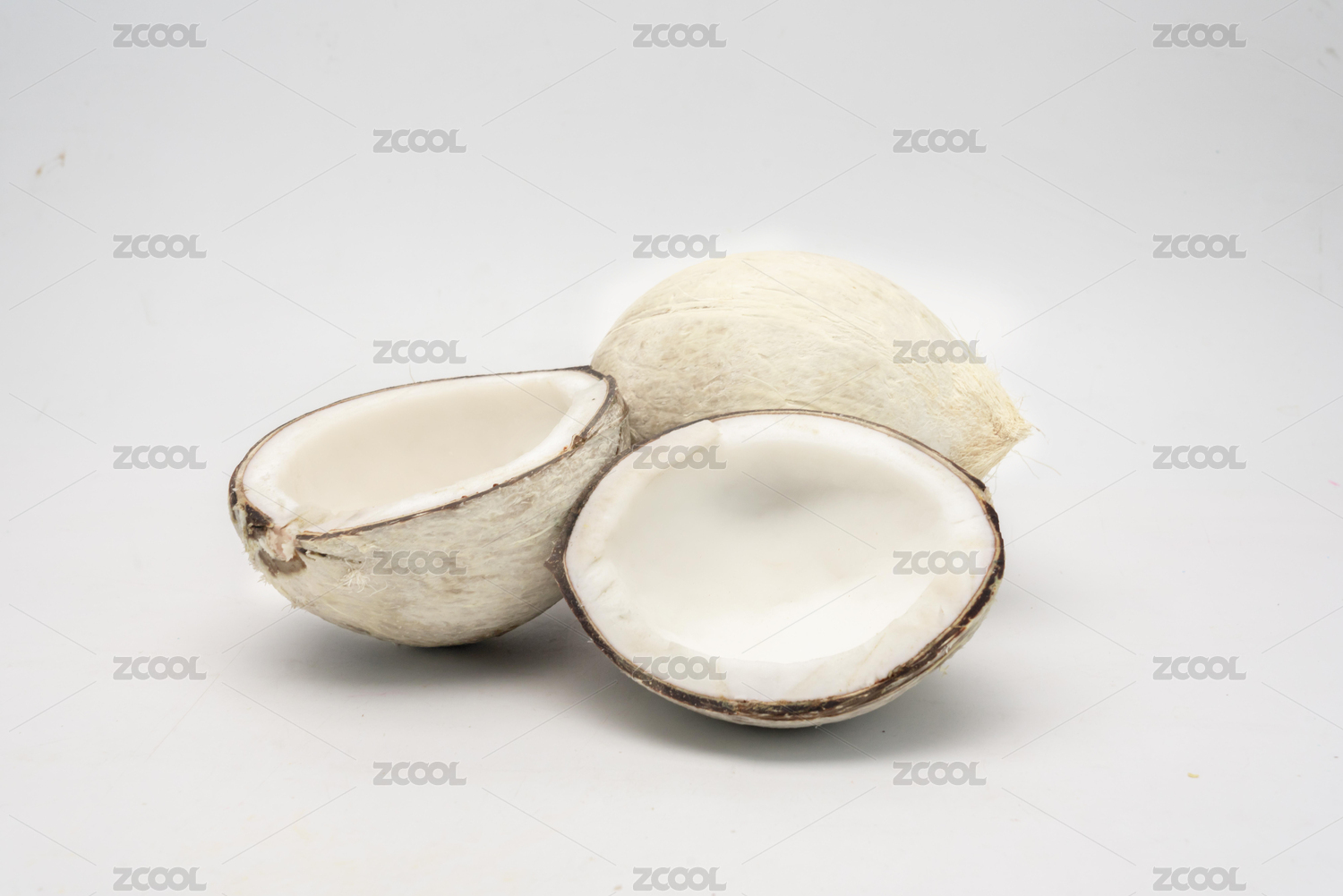 白背景,椰肉,椰子,椰壳,美食,营养丰富,新鲜,果肉,白色,水果