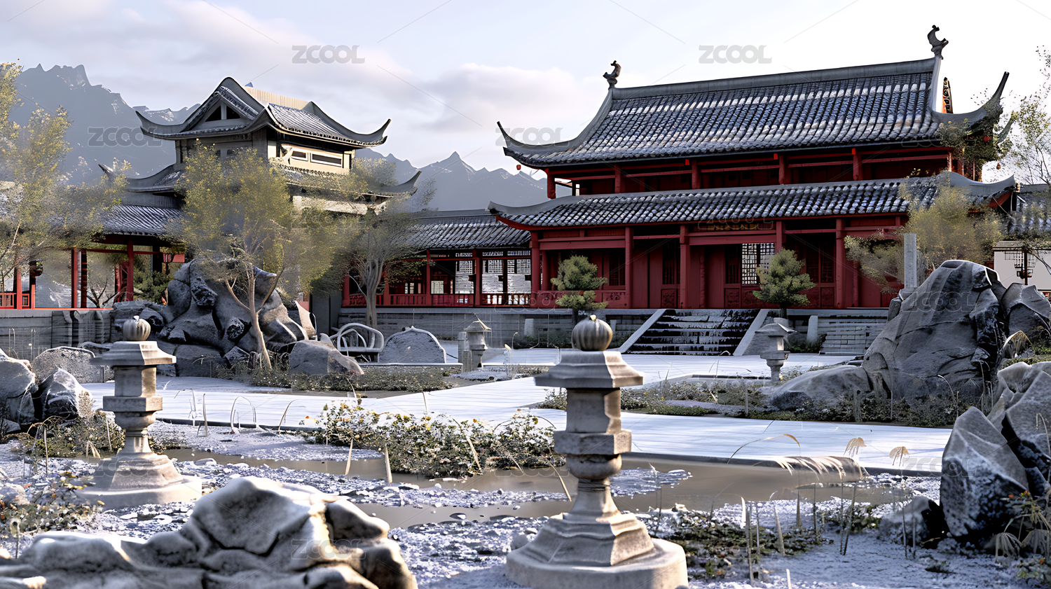 古镇,国风,中式,古风,传统,3d,插画,建筑,历史,中国