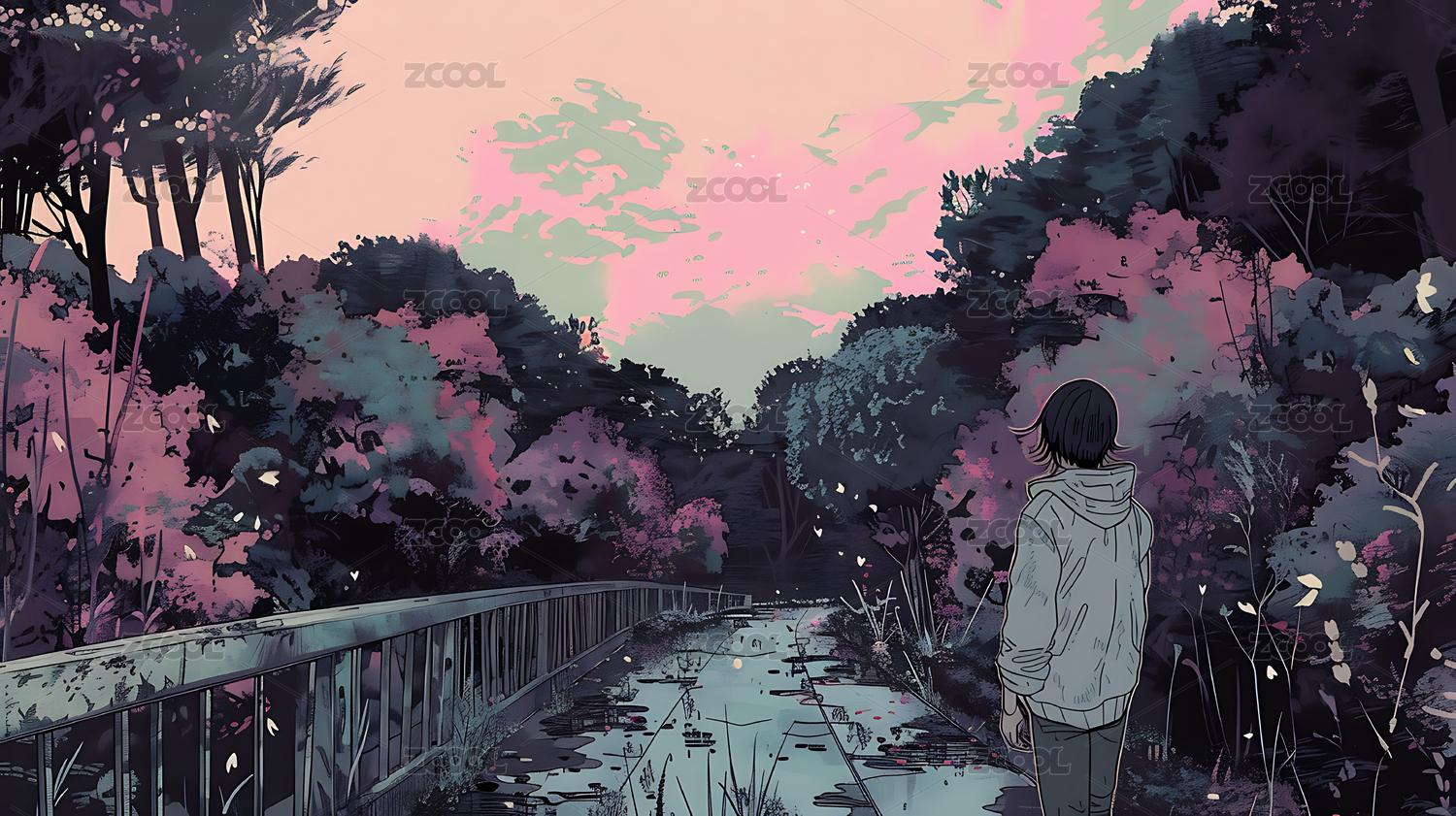 插画,复古,日漫,日式,宁静,自然,扁平,漫画,背景,壁纸