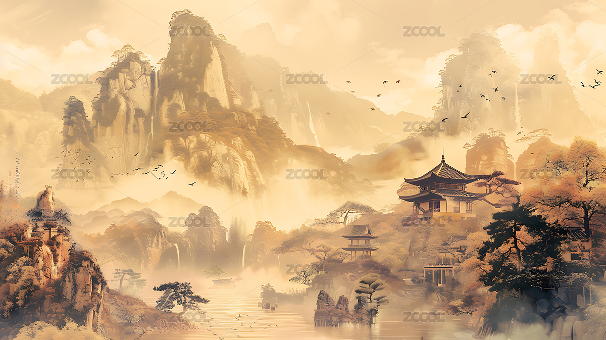 山水,水墨,国风,插画,风景,古风,传统,文化,自然