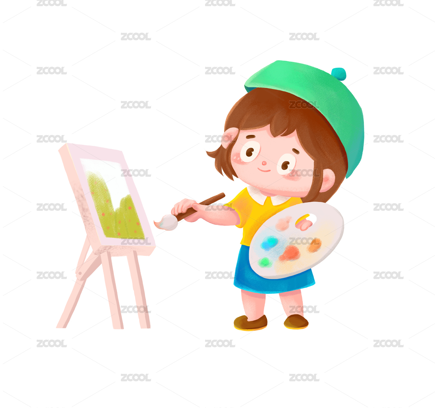 扁平,画画,女孩,少女,矢量,人物,画板,绘画,艺术,文艺