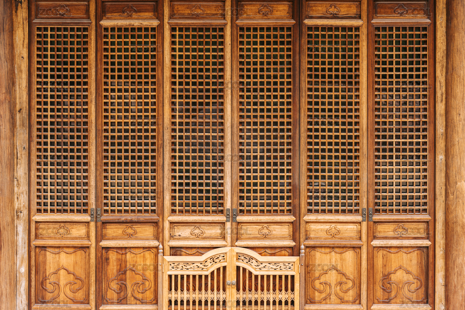 中国安徽省黟县卢村木雕楼中式镂空雕花门窗