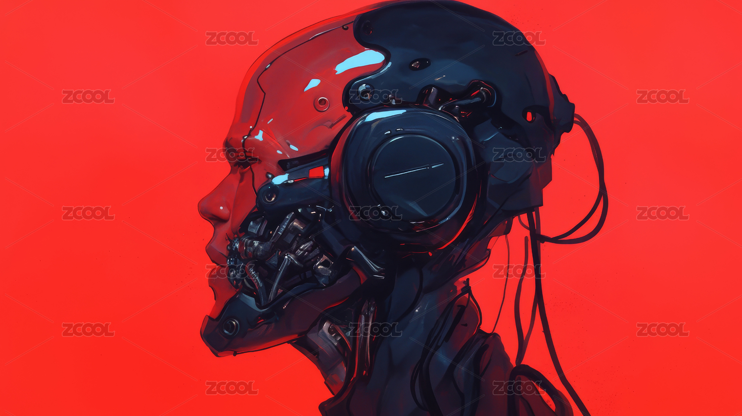 赛博朋克动物狼野兽发光未来科技科幻虚构
