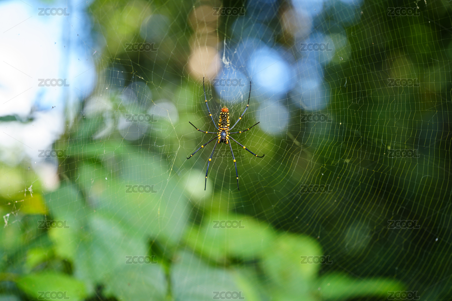 棒络新妇,蜘蛛,八腿,户外,无人,昆虫,自然,绿色,叶子,大光圈