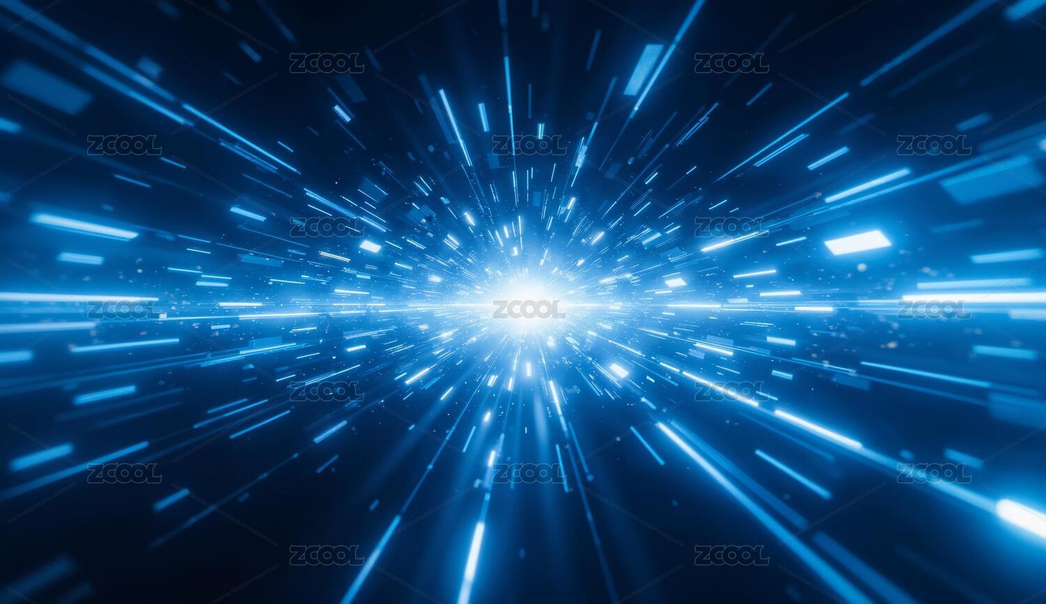 蓝色光束汇聚的科技感场景