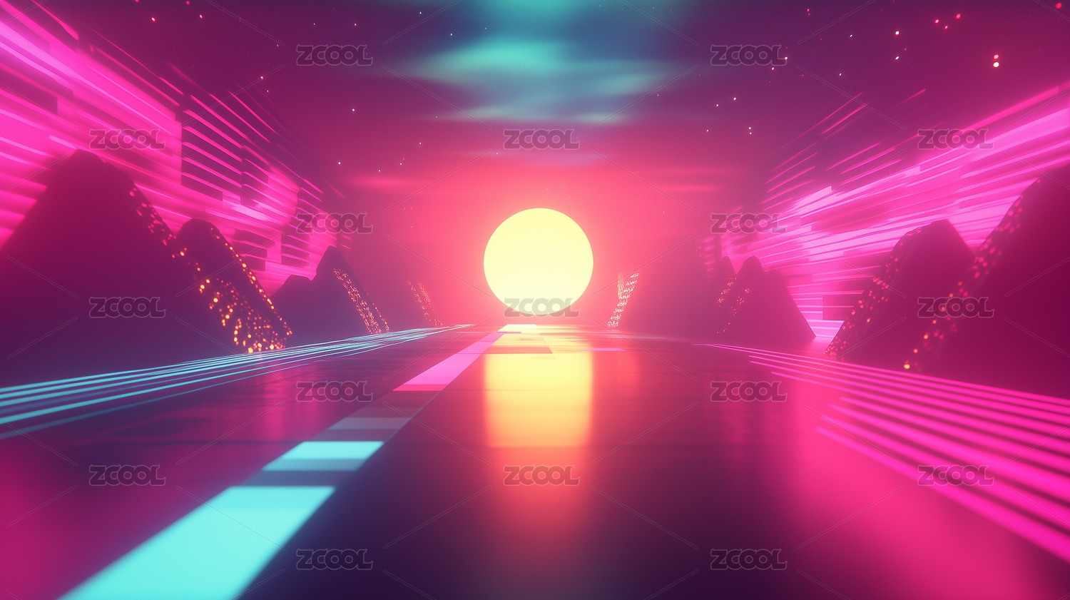 抽象霓虹灯发光几何线条3D渲染商务背景