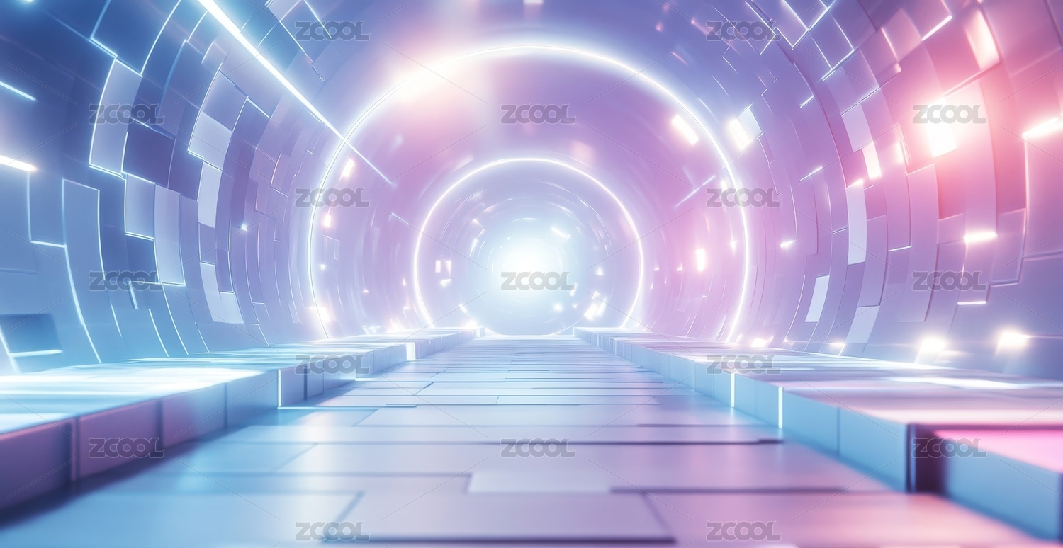 数码科技紫色霓虹灯抽象未来派隧道海报背景