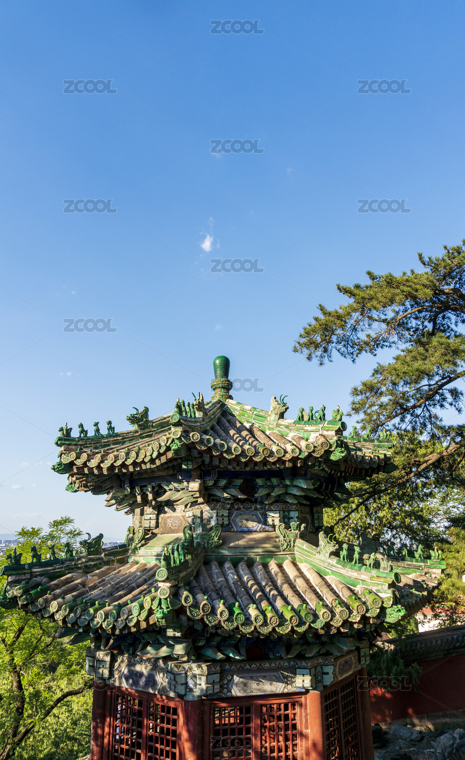 夏天蓝天下中国北京颐和园万寿山寺庙