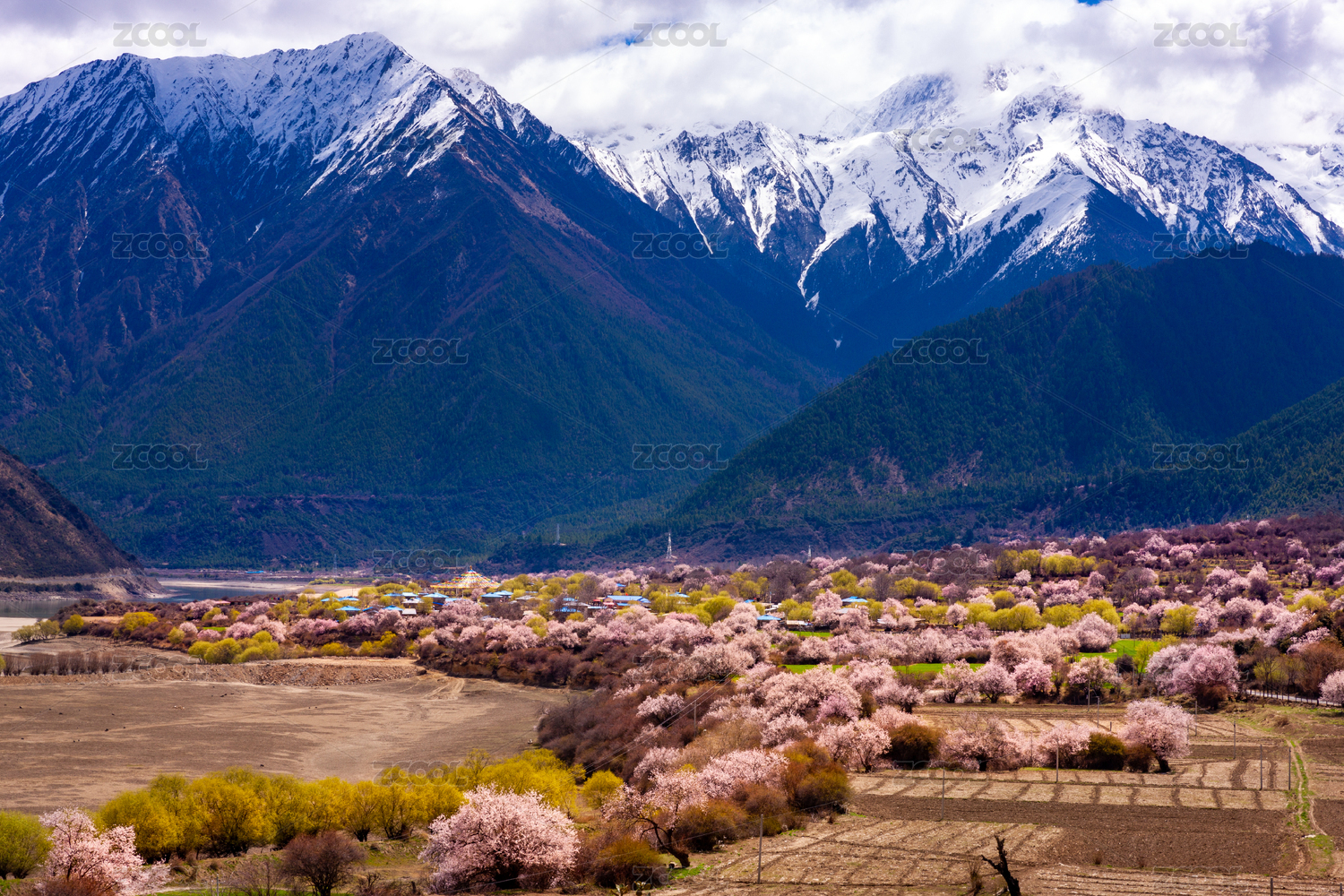 航拍,高角度,西藏,春天,春,林芝,波密,花,树,桃花