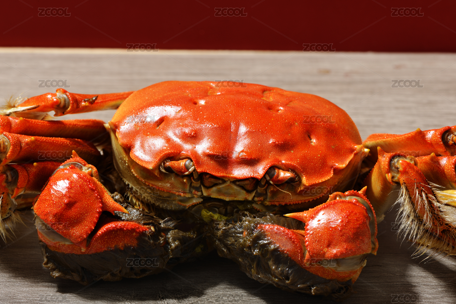 纯色背景上的红色熟大闸蟹