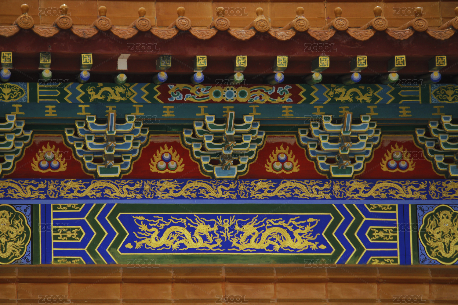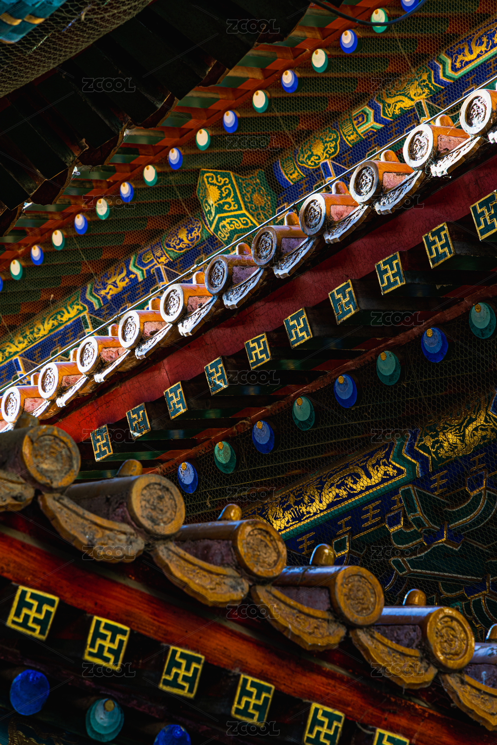 中国故宫的斗拱木结构彩绘