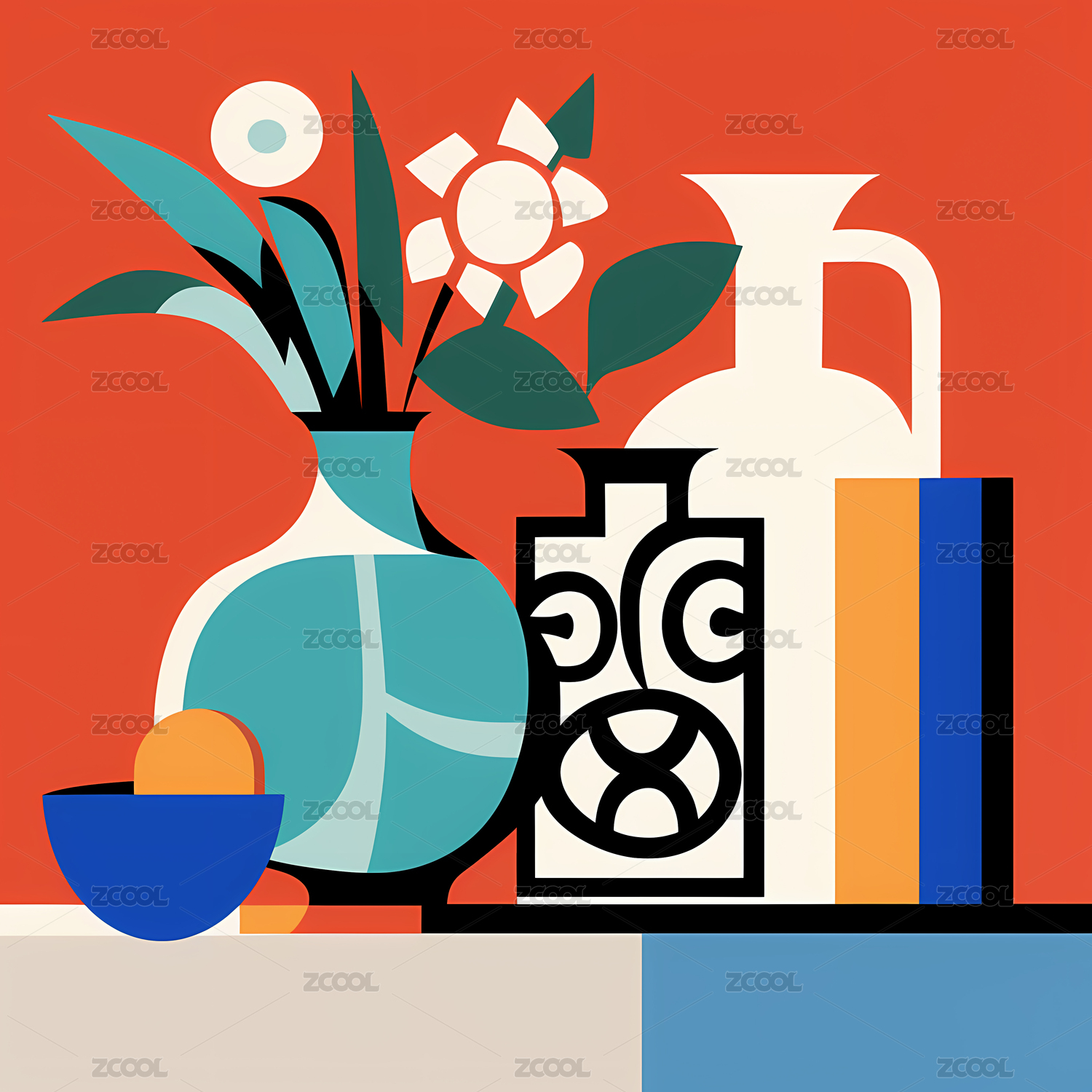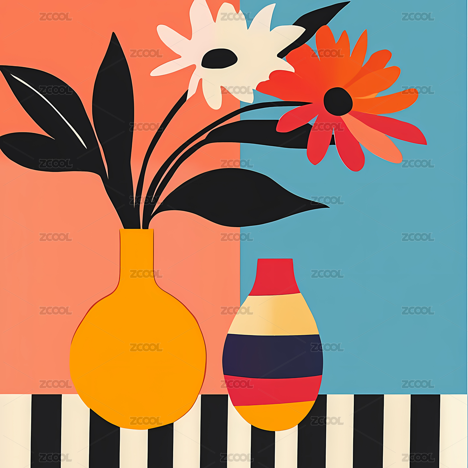 AIGC,花,条纹,背景,菊花,花瓶,瓶子,橙子,水果,白色