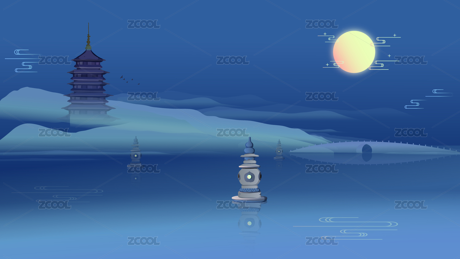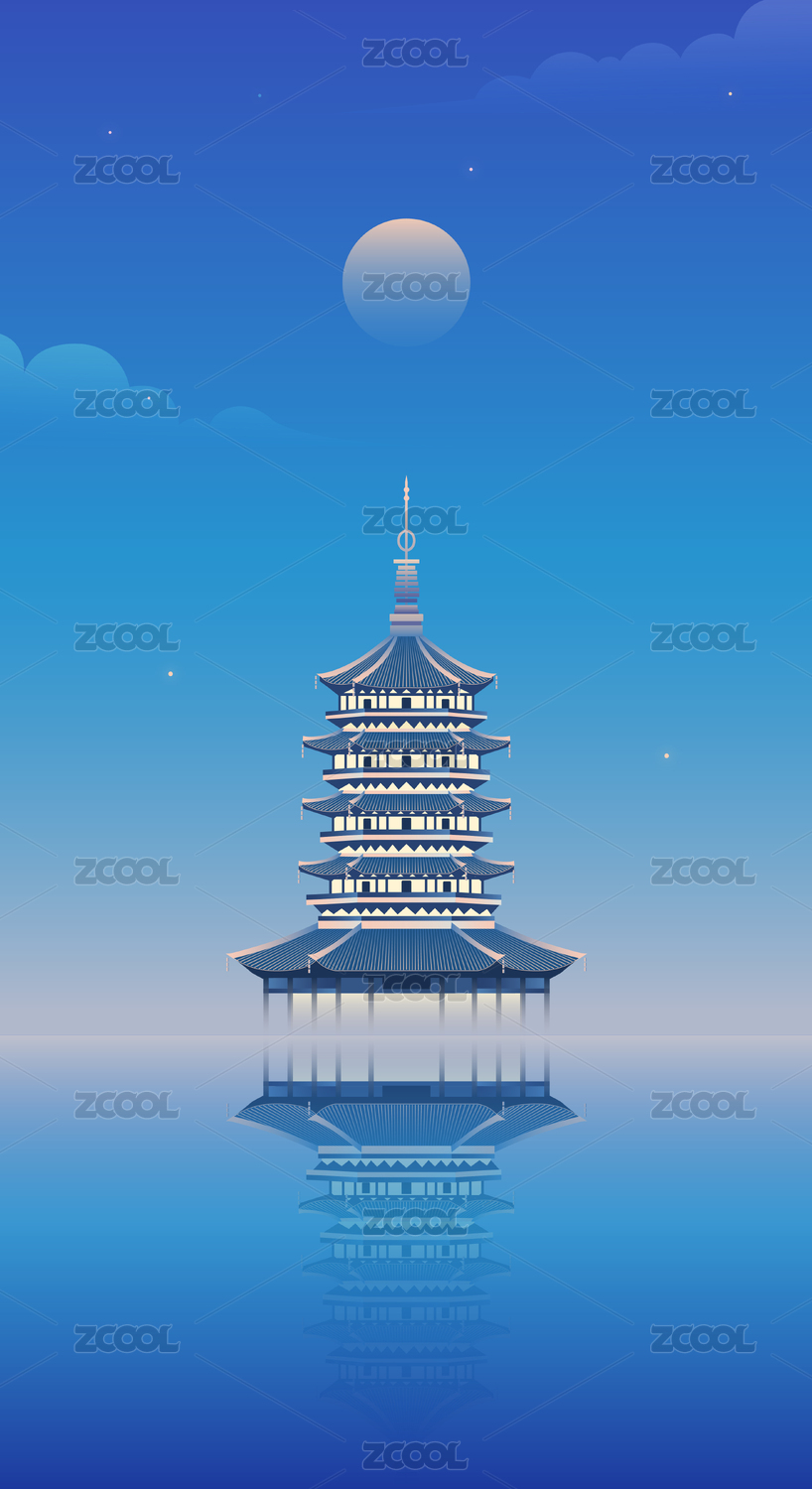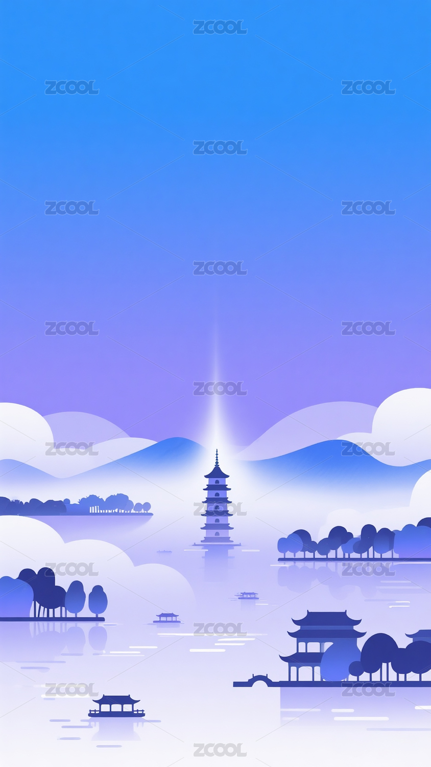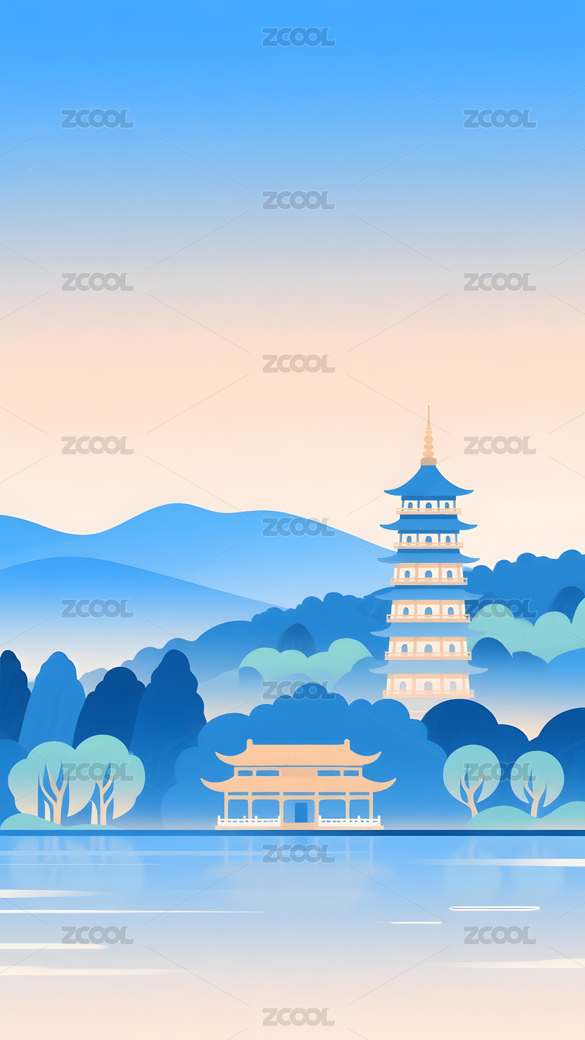 杭州,西湖,雷锋塔,节气,二十四节气,旅游,旅行,山水,中国风,插画