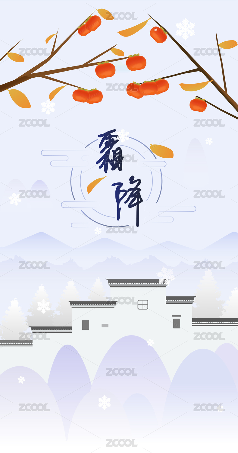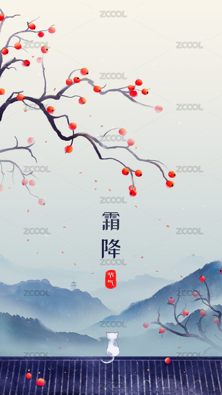 秋天,秋季,霜降,节气,季节,柿子,树枝,中国画,水墨画,中国风