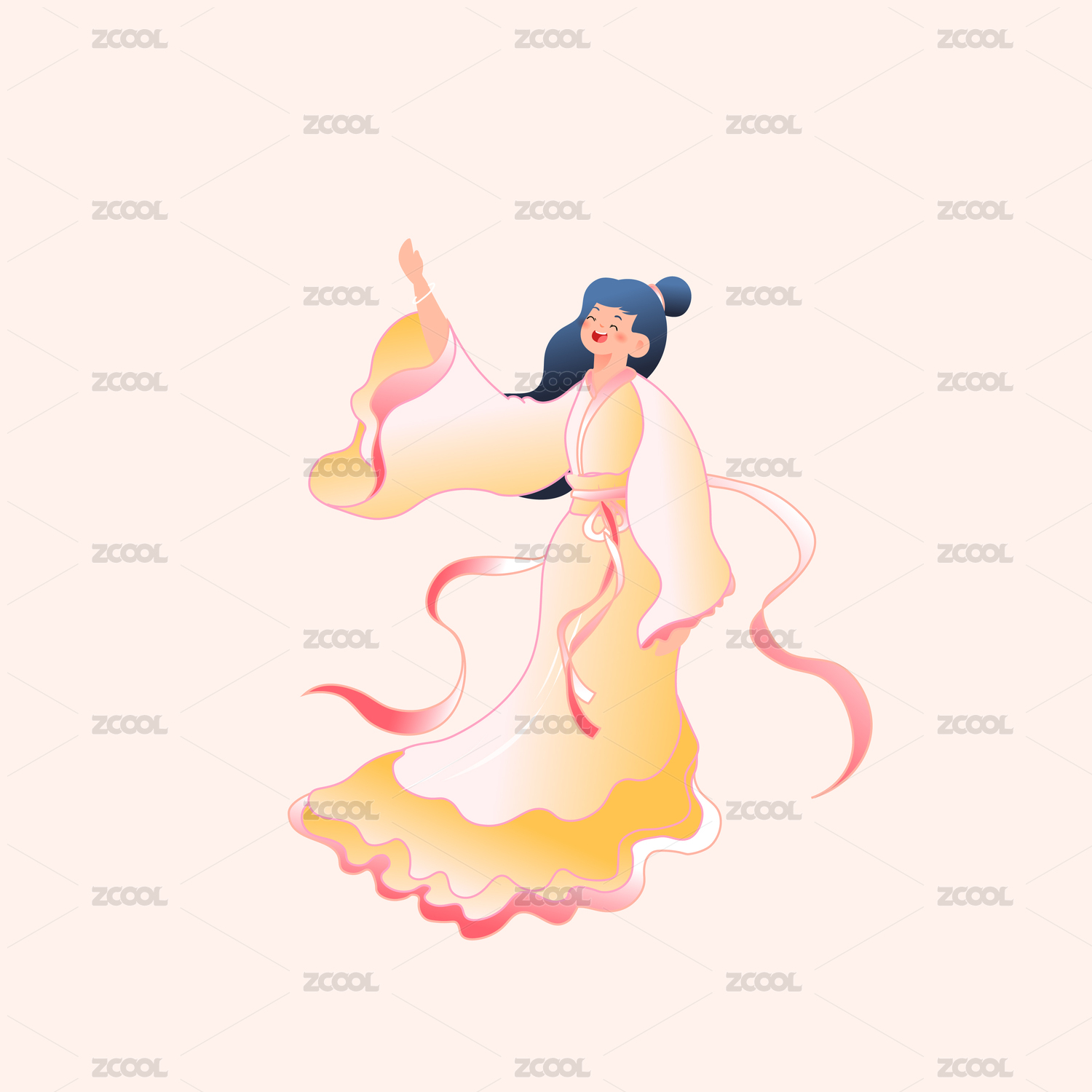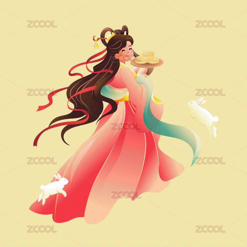 中国传统节日中秋节嫦娥奔月手绘插画素材