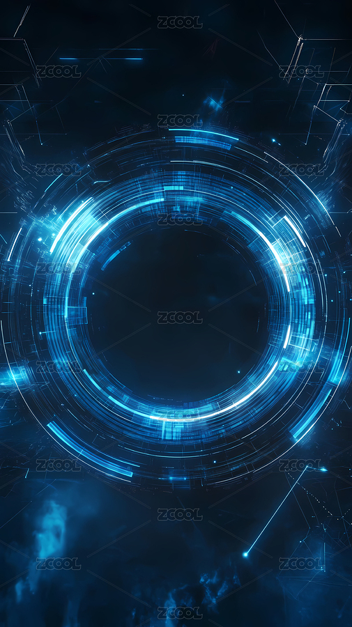 抽象科技蓝色圆环线条光圈对称放射状圆圈