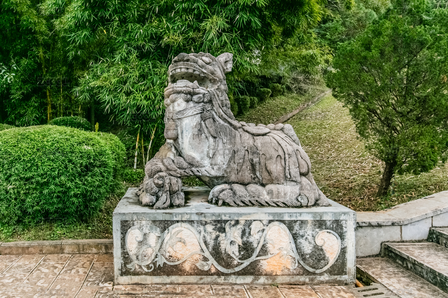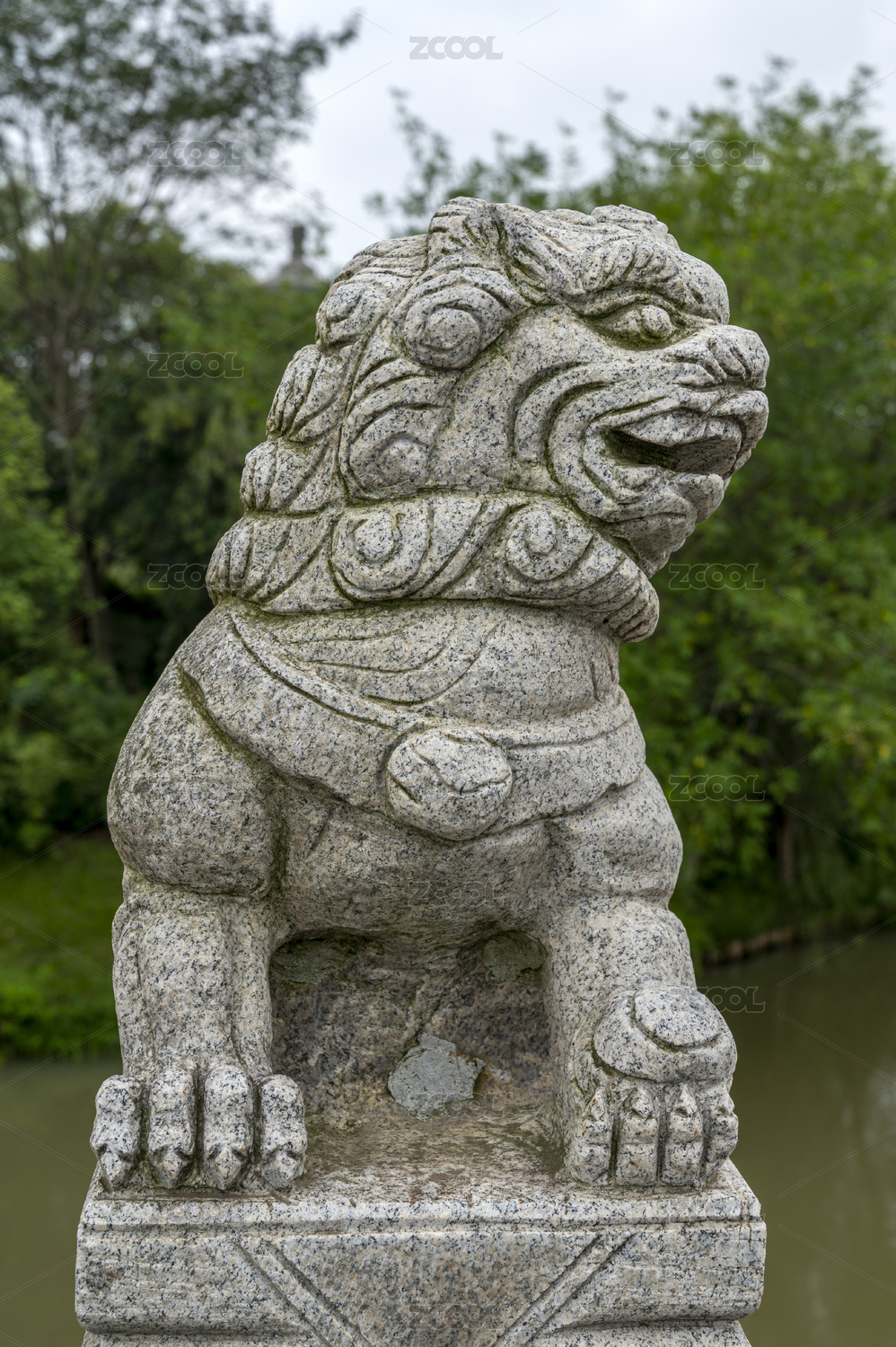 中国云南省普洱市梅子湖公园石狮兽雕像装饰