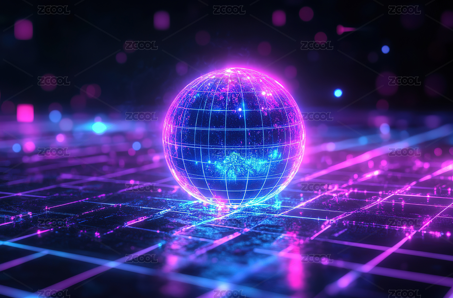 科技感十足的紫色光球在数字空间中闪耀