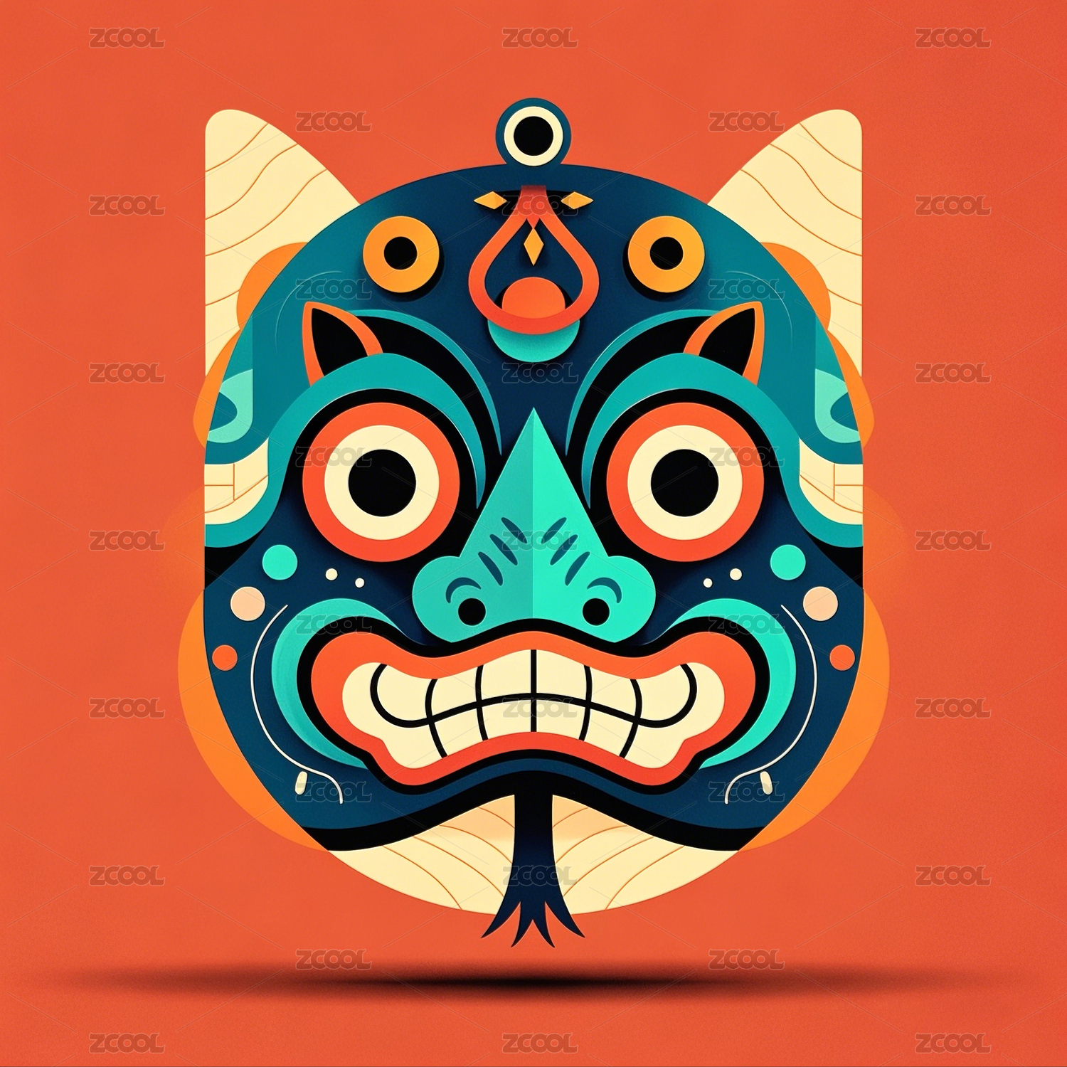 傩文化,巫文化,面具,民族风,扁平风格,抽象,传统文化,民俗,图案,纹样
