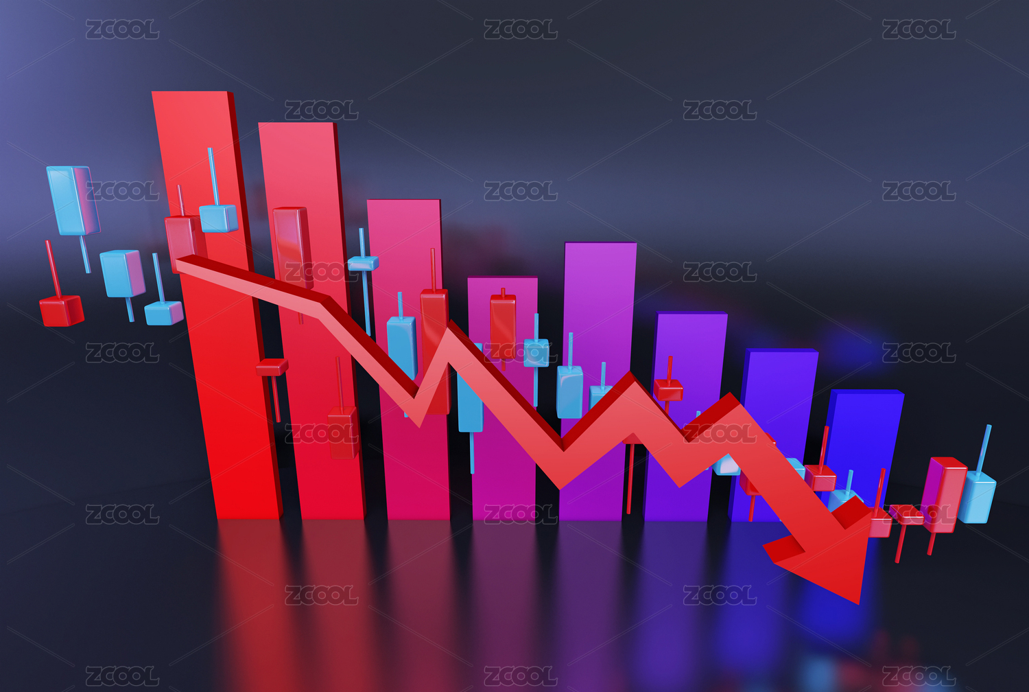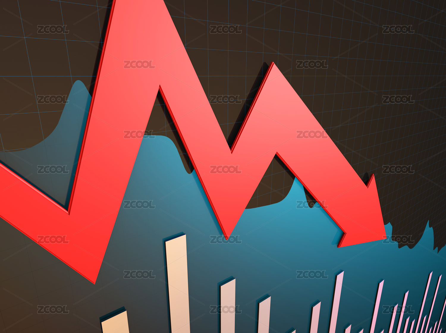蓝色背景中股市涨跌线和波动箭头组成的金融类插图