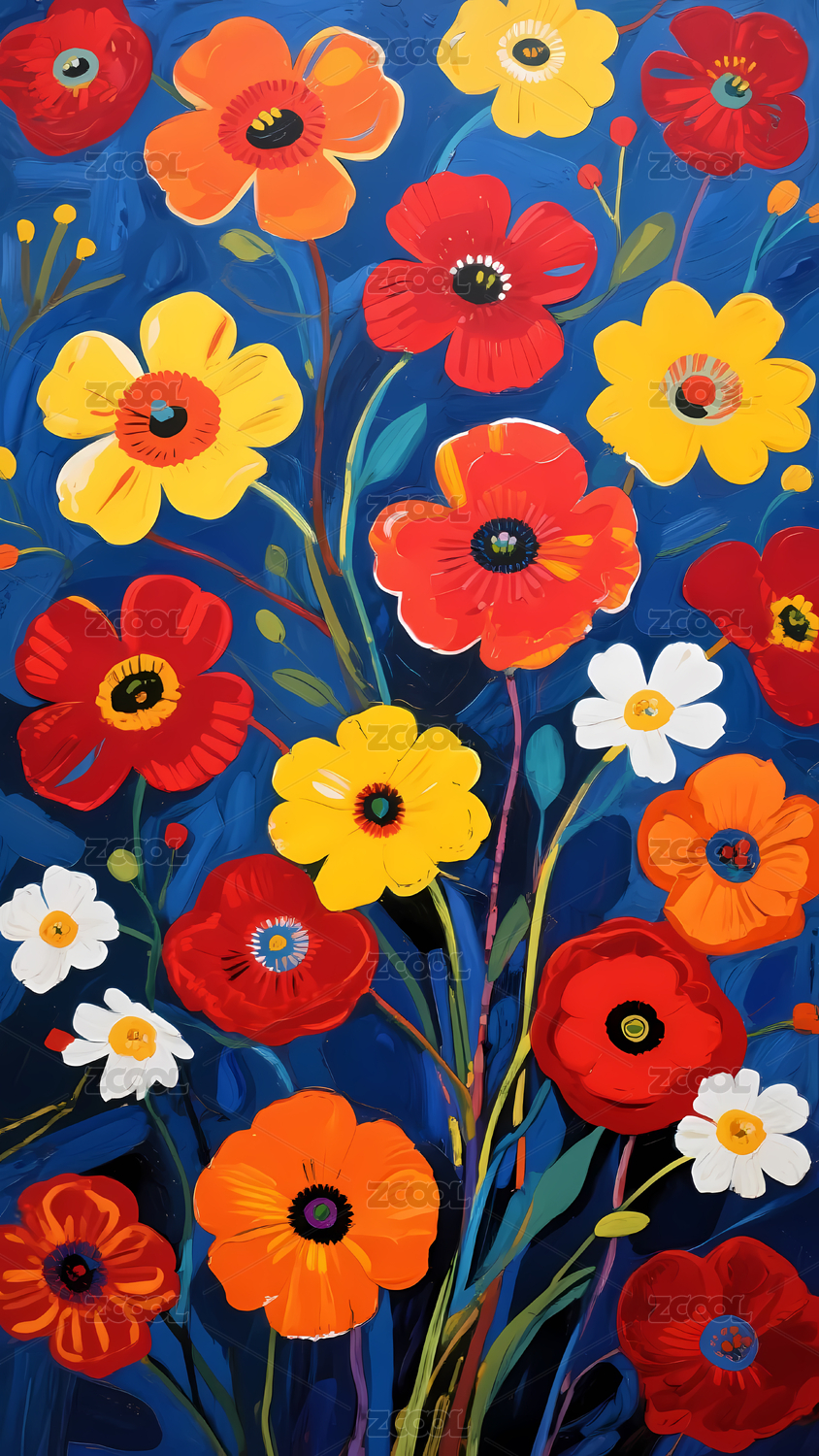 数码复古彩色梦幻花朵装饰抽象海报背景