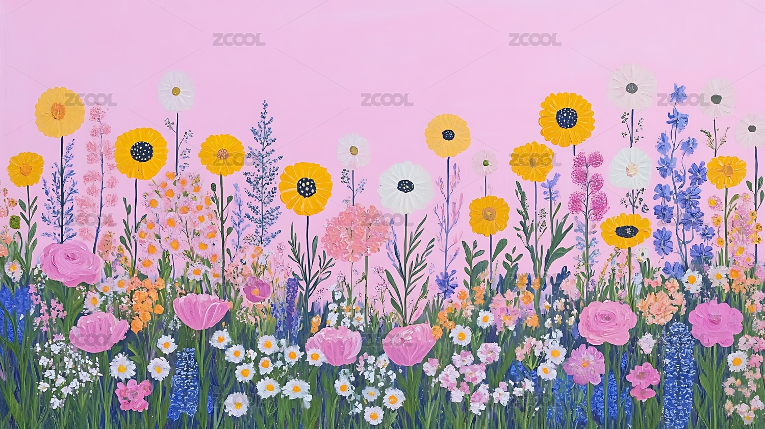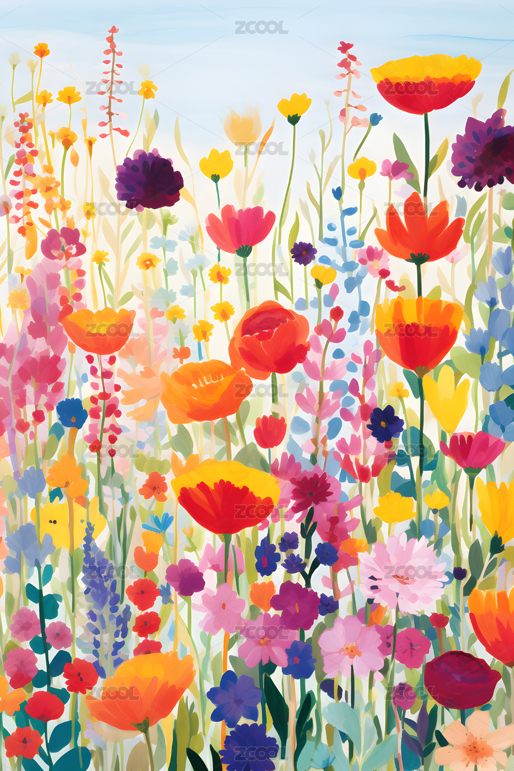 小清新彩色花丛插画