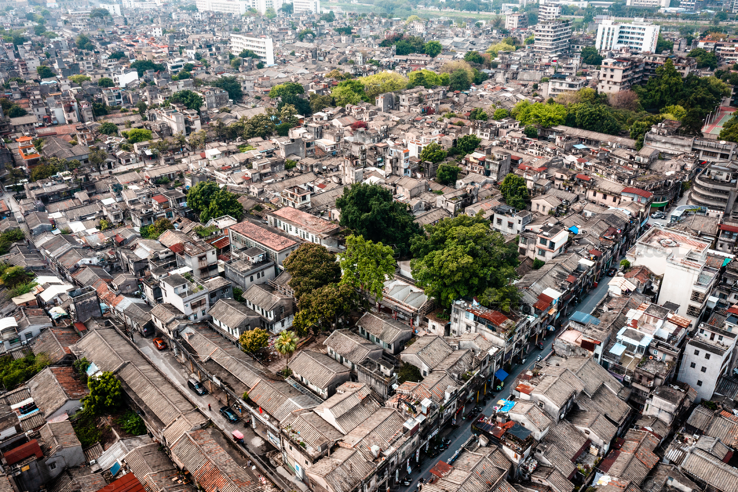 航拍东莞老城区