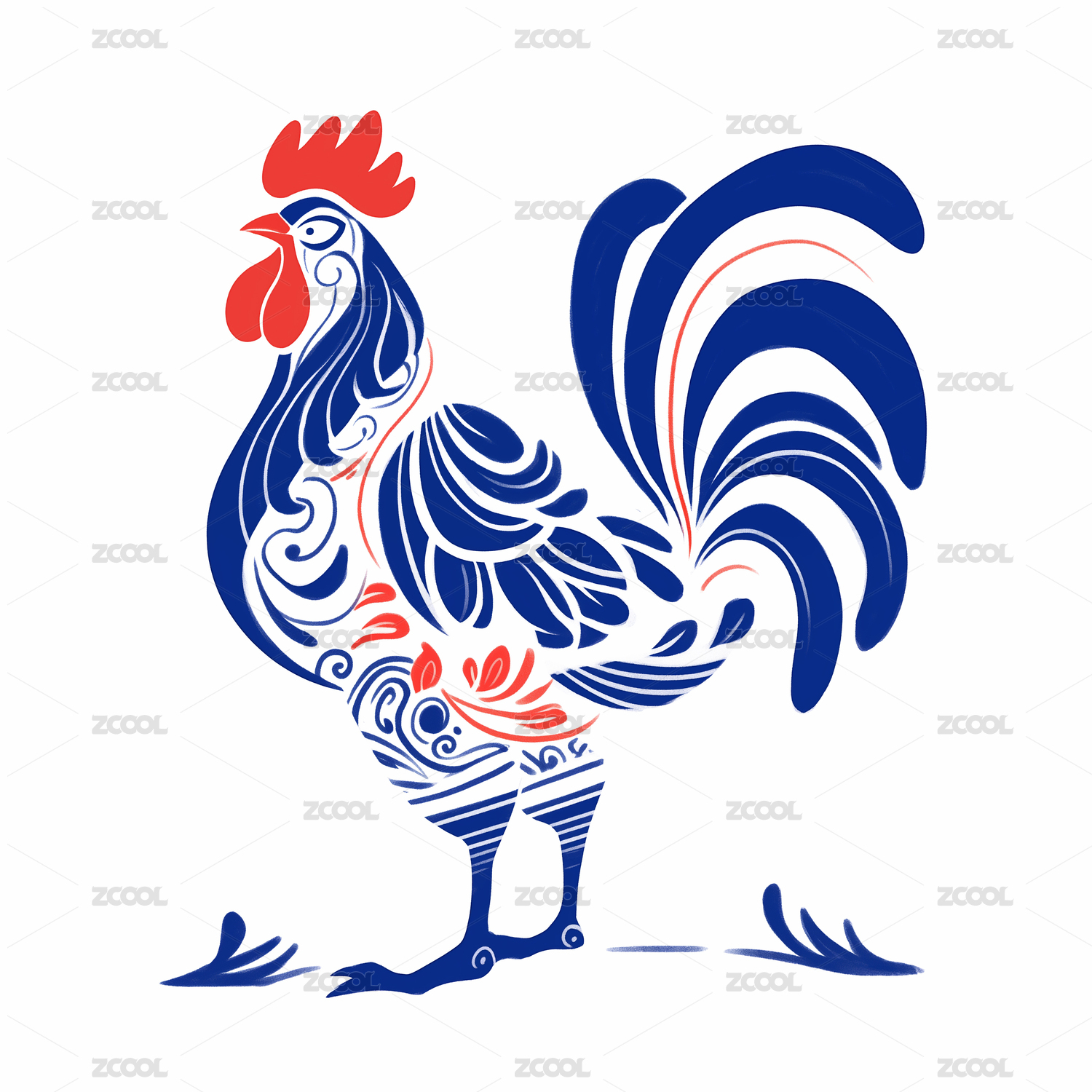 红色剪影公鸡图案