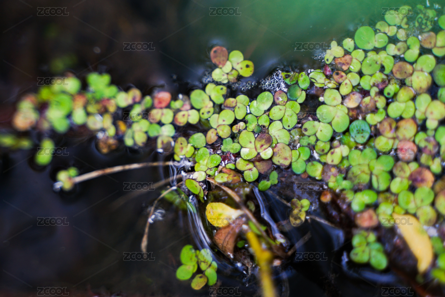 水中浮萍特写水面