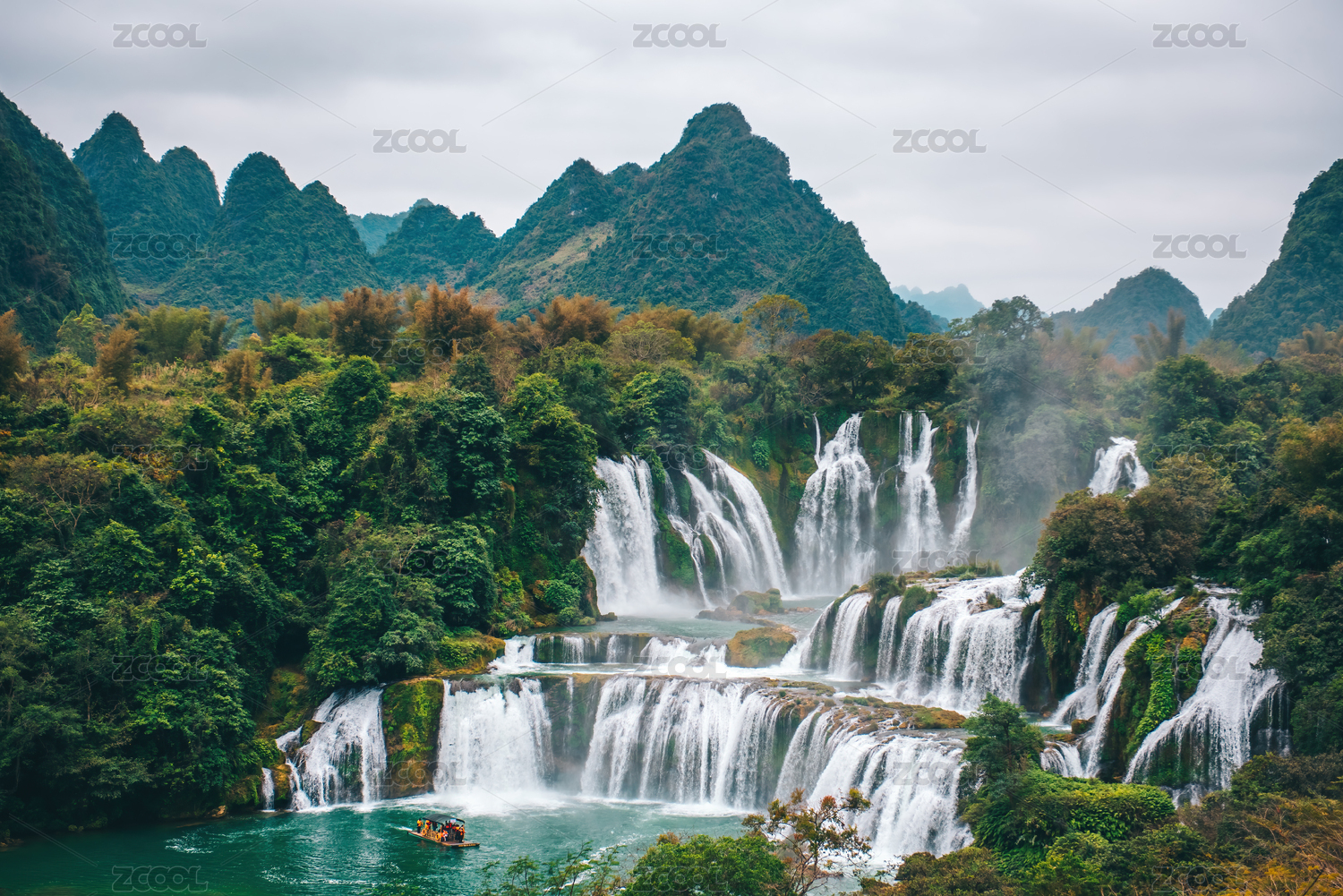 中国广西省崇左市边境跨国德天瀑布阴天景色