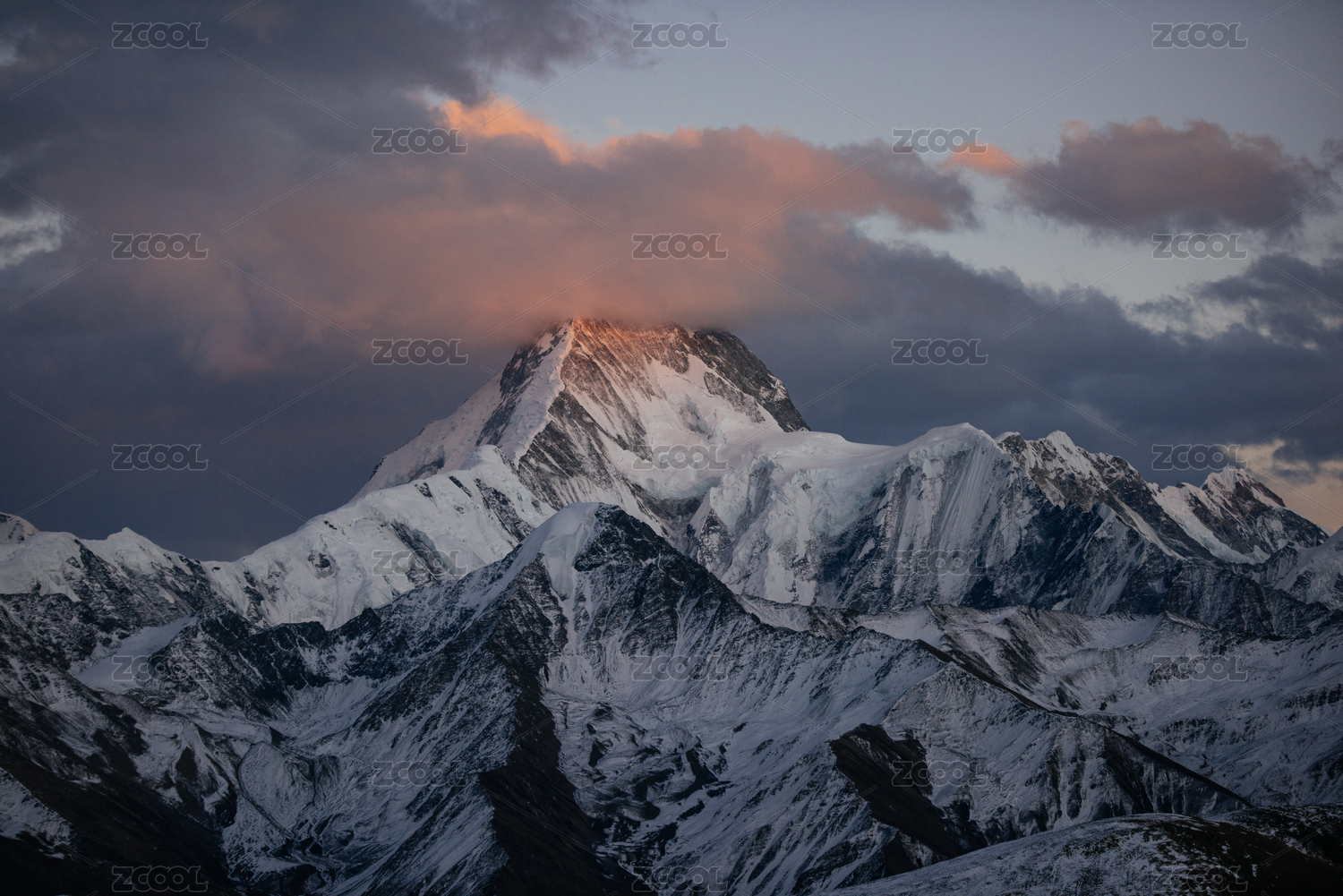 中国西藏索松村冬季观赏南迦巴瓦峰日照金山