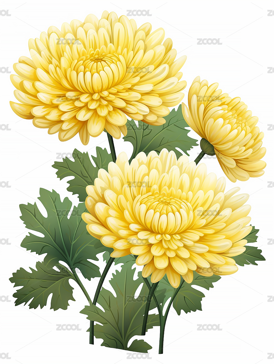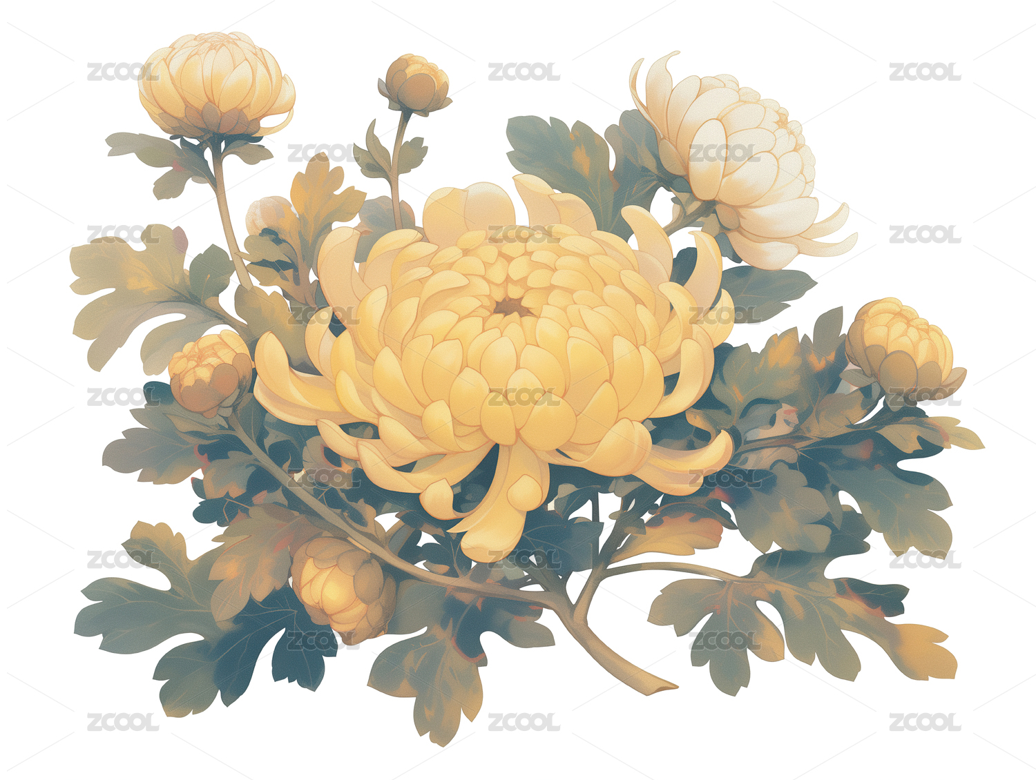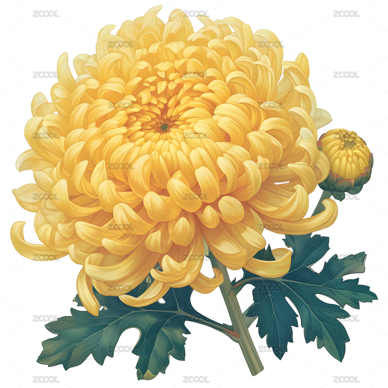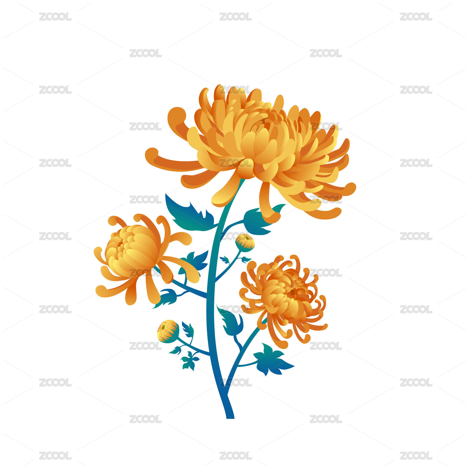 秋天菊花插画,传统秋分节气植物,重阳节概