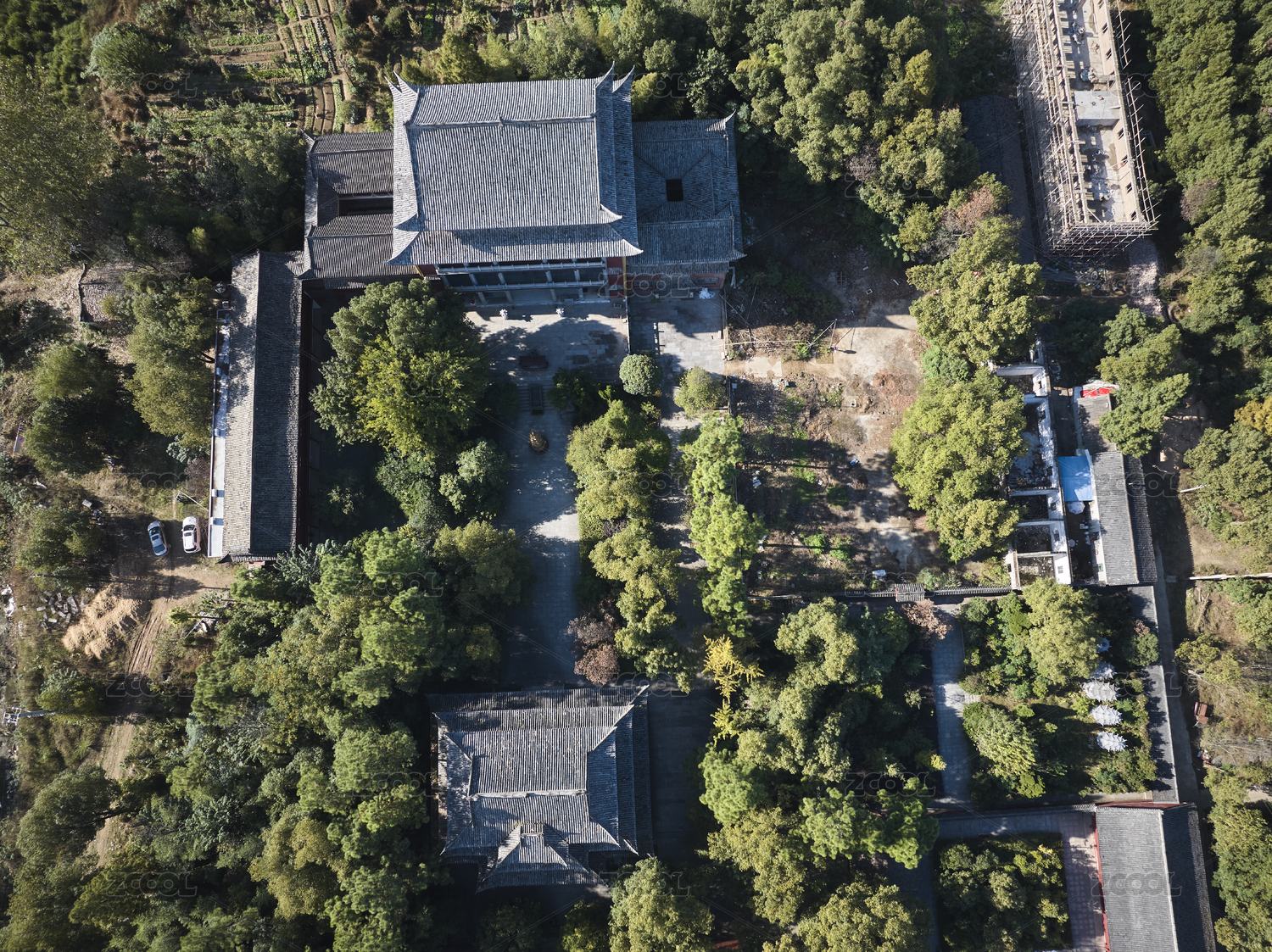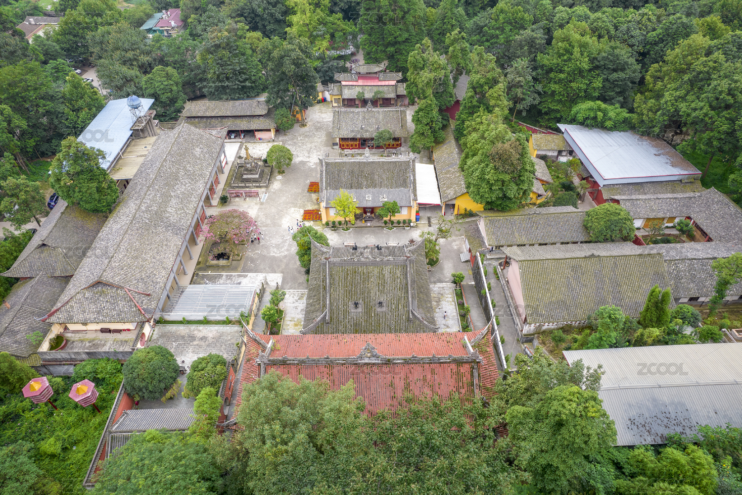 阆中古城张飞庙(汉桓侯祠)白昼晴天航拍