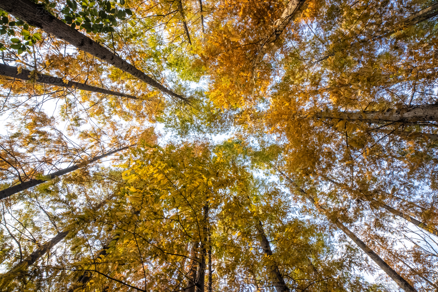 中国广东东莞中央群岛公园,秋天落羽杉风光