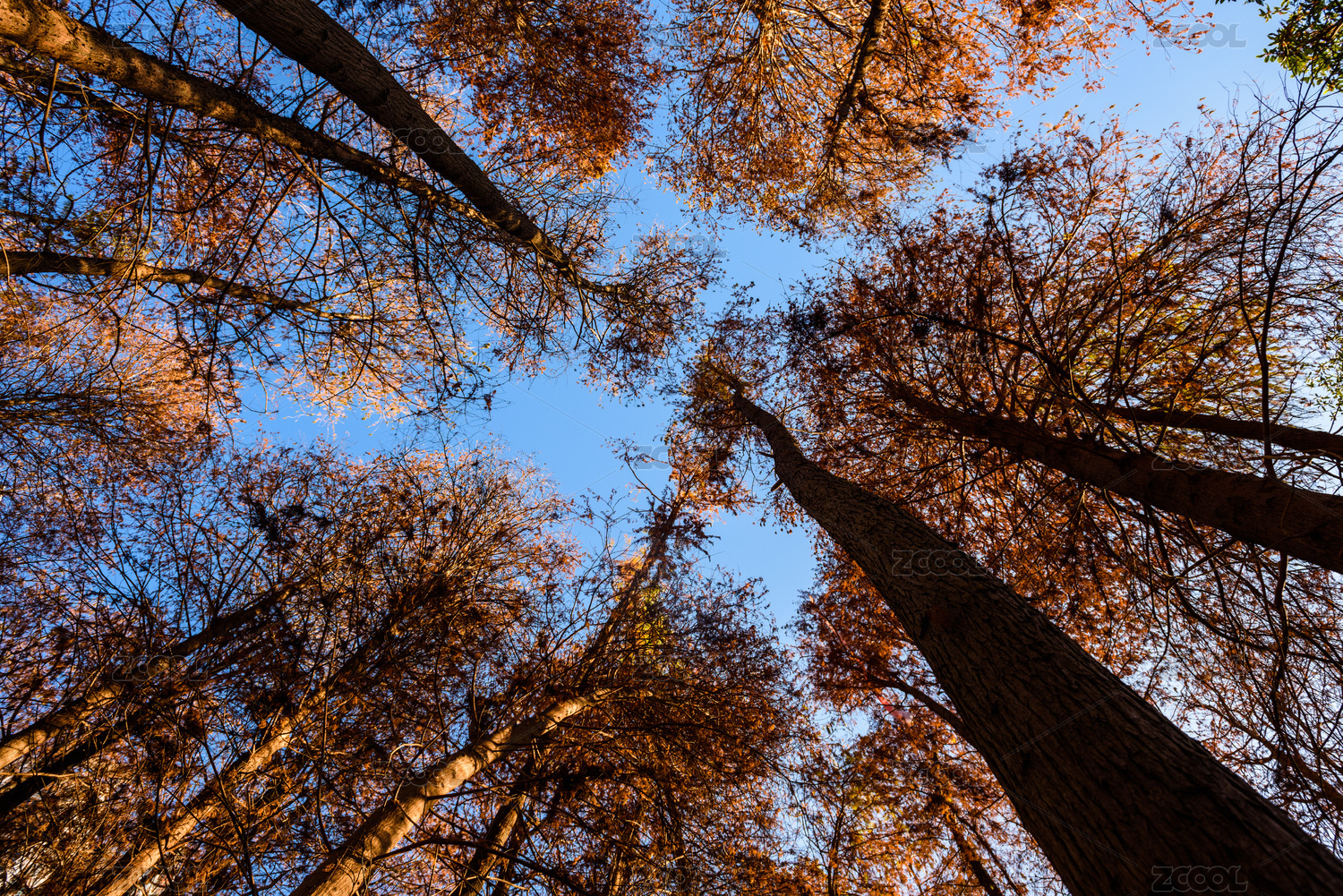 树影,树,叶子,蓝天,仰拍,水杉,杉树,树林,密集,高大