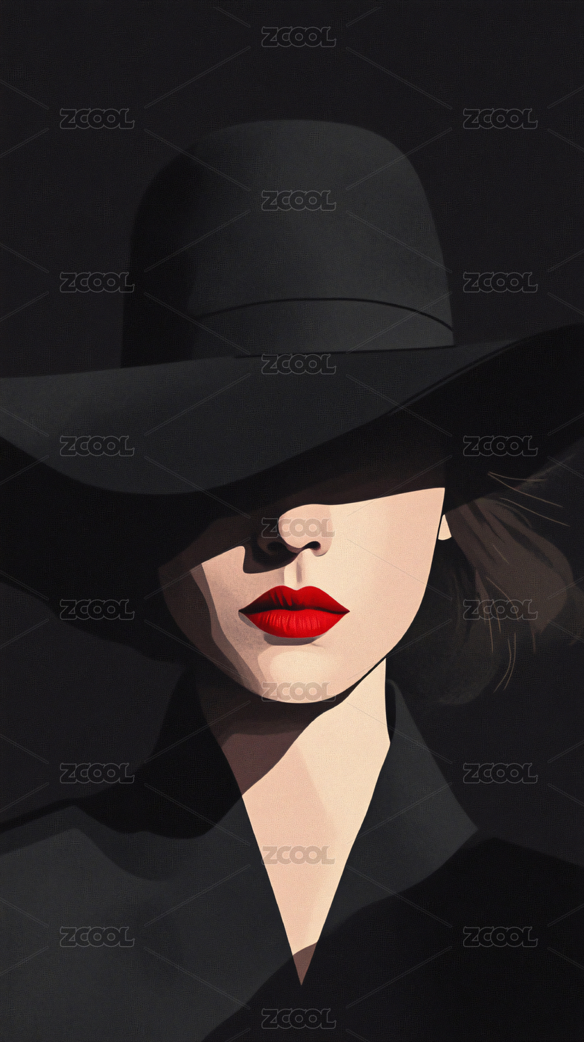 神秘的时尚红唇女郎