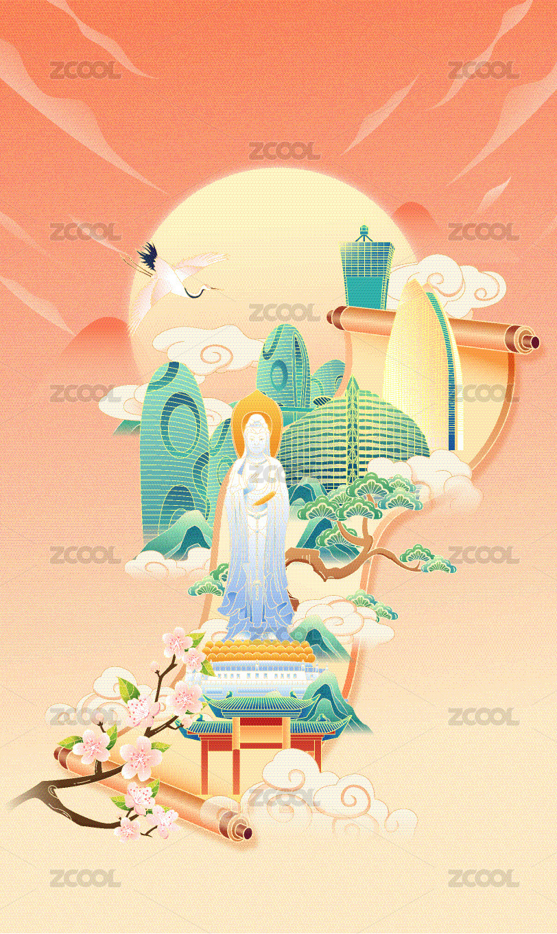 国风画卷珠海城市建筑矢量插画海报